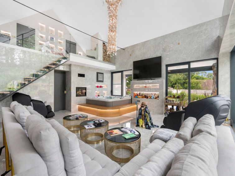 "Luxury Retreat Resort", 15-room house 550 m2 on 2 levels. Spacious, modern and luxurious furnishings: open living room with 1 double sofabed, open-hearth fireplace and TV. 1 room with 1 double bed (180 cm), shower/WC and TV. 1 room with 1 bed and 1 double bed (180 cm), shower/WC.
