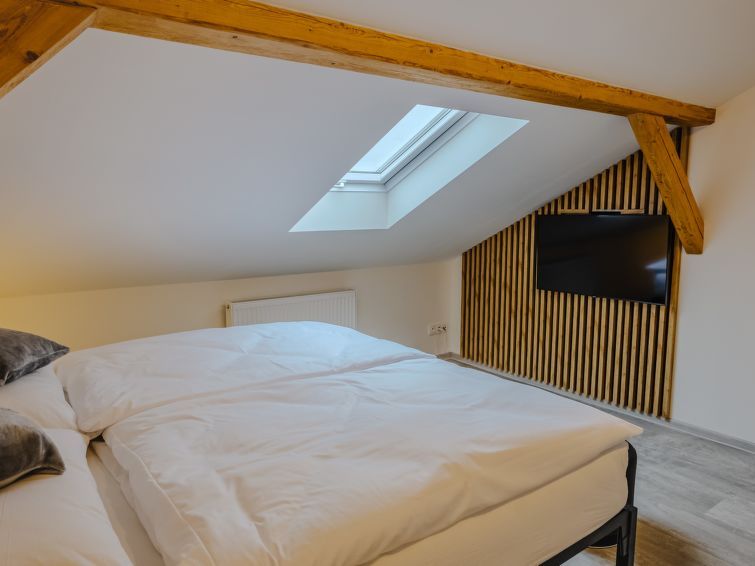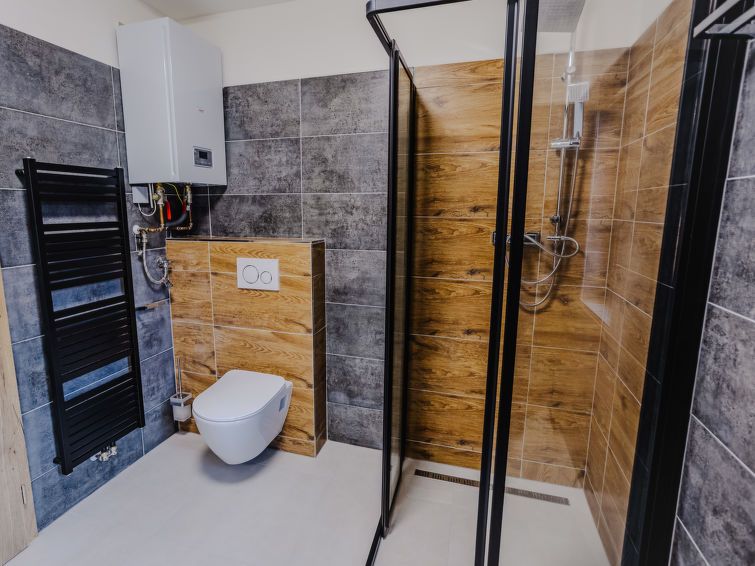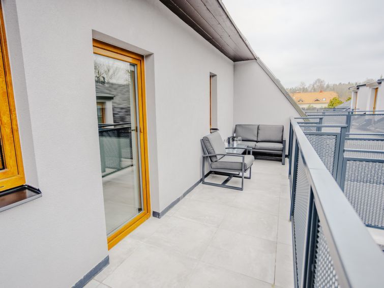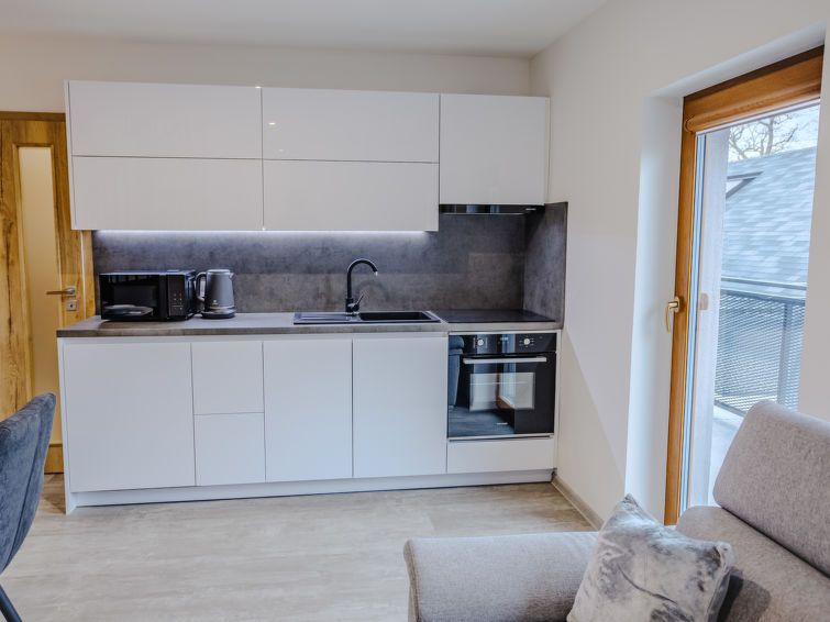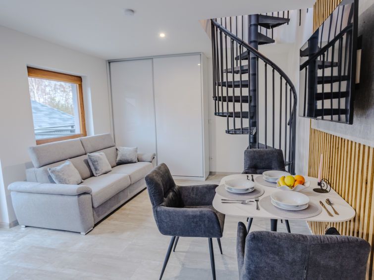 "Rezidence Petra Voka 208", 3-room maisonette 78 m2 on 2 levels. Living room with 1 double sofabed and TV. Exit to the terrace. Kitchenette (oven, dishwasher, 4 ceramic glass hob hotplates, toaster, kettle, microwave, electric coffee machine) with dining nook. Shower/WC. Upper floor: open walk-through room with 1 bed.