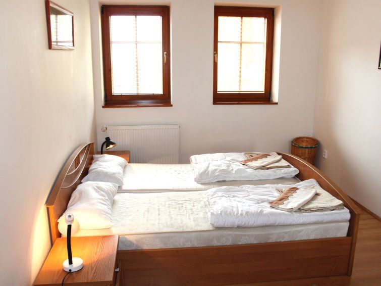 2-room apartment 45 m2. Very beautiful and modern furnishings: living room with 1 bed and 1 double sofabed (140 cm), satellite TV. 1 double bedroom. Kitchen (2 hot plates, oven, kettle, microwave, freezer) with dining table. Bath/WC. Gas heating. Box-room. Beautiful view of the countryside.