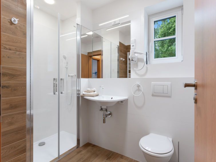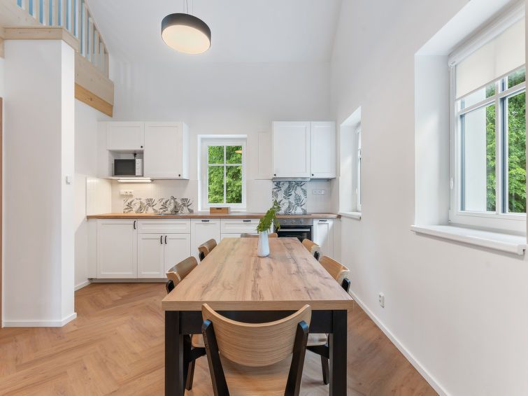 2-room Loft on 2 levels on 1st floor. Very beautiful furnishings: open large living/sleeping room with 1 double sofabed (140 cm), 1 double bed and TV. Kitchenette (oven, dishwasher, 4 ceramic glass hob hotplates, kettle, microwave, electric coffee machine) with dining nook. Shower/WC.