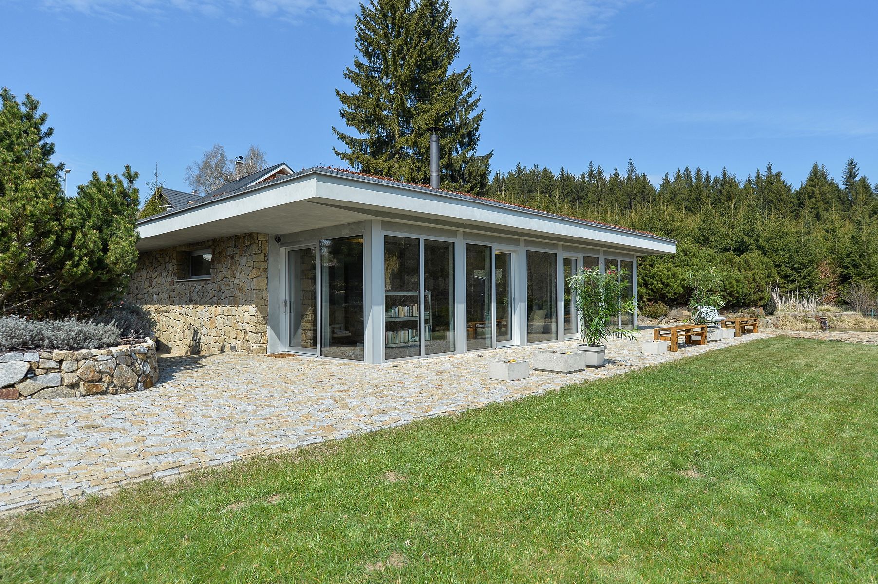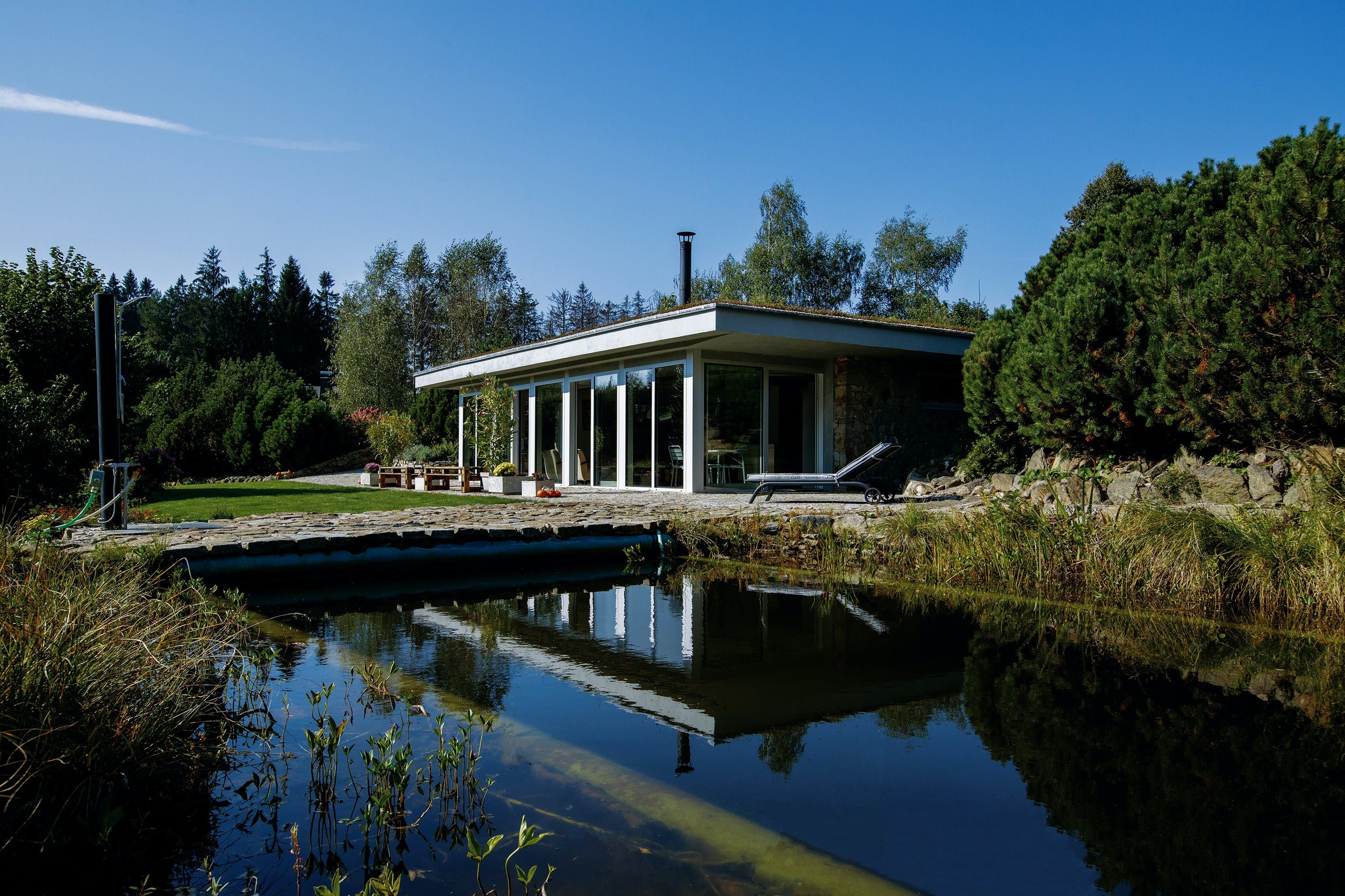 Located in the heart of the forest in Stara Rise in the Vysocina Region of the Czech Republic, this home is surrounded by unspoiled nature providing you with a tranquil getaway that will remain in your memory for years to come. Plus, the home's 'green' roof even features its own eco-system of decorative flowers and fresh fruit.