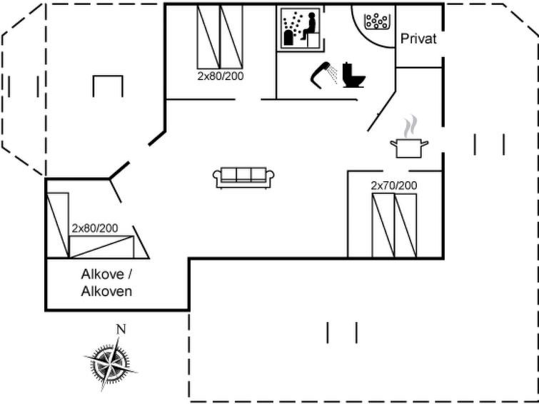 "Ejnarine" - 300m from the sea", 3-room house 85 m2. Object suitable for 6 adults. Living room with TV, radio, CD-player and DVD. 1 room with 1 double bed. 1 room with 1 double bed. 1 room with 2 beds. Kitchen (oven, dishwasher, 4 induction hot plates, microwave, freezer). Shower/WC, hydro massage bath.