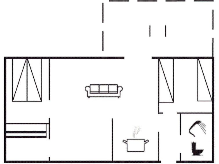 "Franzine" - 200m from the sea", 3-room house 55 m2. Object suitable for 6 adults. Living room with TV, radio, CD-player, hi-fi system and DVD. 1 room with 1 double bed. 1 room with 1 x 2 bunk beds. 1 room with 2 beds. Kitchen (4 hot plates, oven, dishwasher, microwave, freezer). Shower/WC.