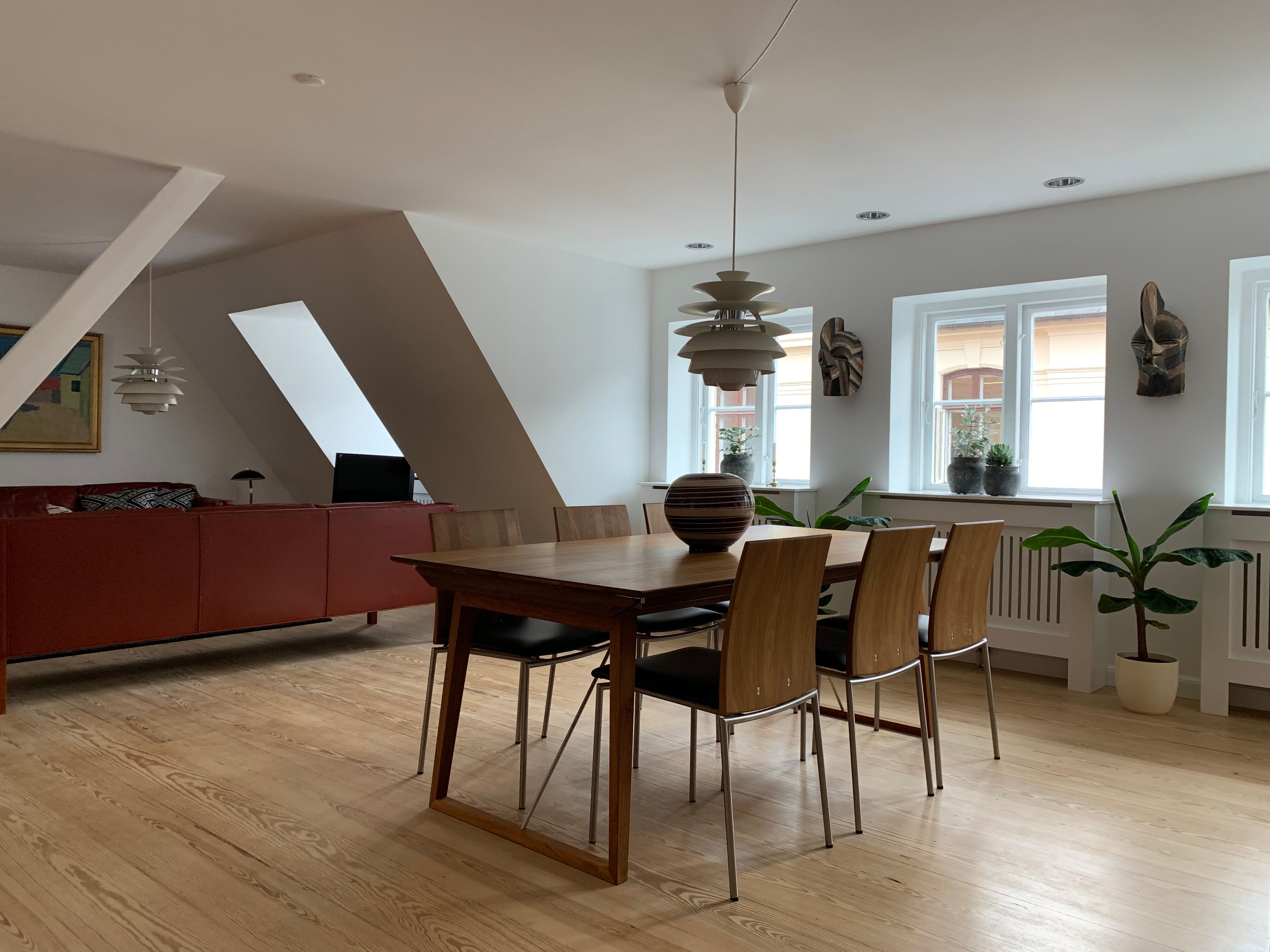 Centrally located and chicly styled, this apartment ticks all of our boxes. You'll be based in lively Indre By, just a short walk from Nyhavn's colourful harbour and Strøget's many shops. But even better than the location is the private roof terrace back home. It's the perfect spot to enjoy a Danish beer and admire the city views. Indoors, the pared-back interiors feature natural elements and lots of light. The kitchen isn't the biggest and there is some adult-themed artwork, but otherwise, it's a cosy option in the heart of the city.