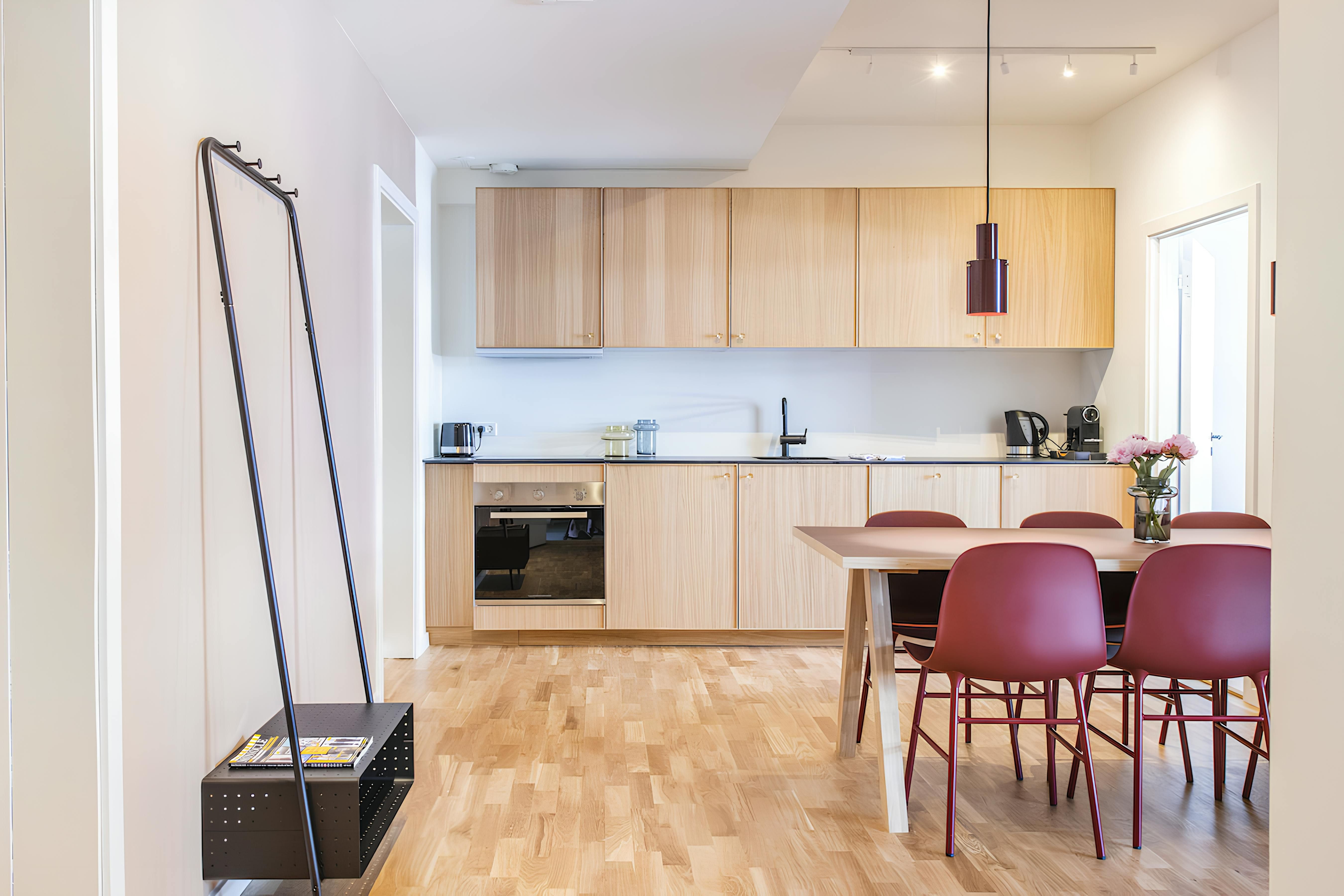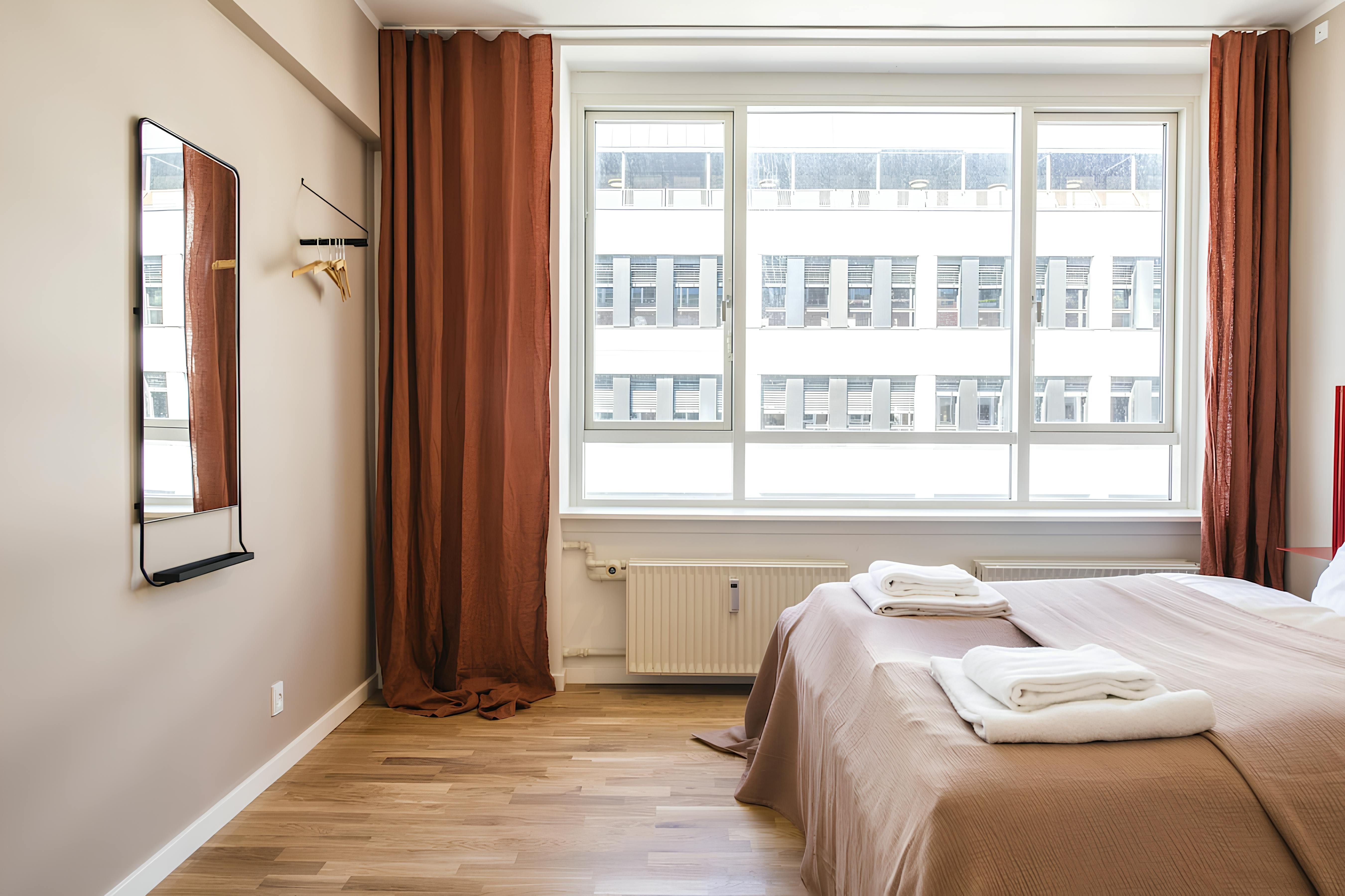 Situated in the heart of Copenhagen, this apartment provides a perfectly practical space for groups visiting the city. Tivoli Gardens is less than a ten-minute walk away, while nearby Ørstedsparken is a great spot for escaping the city buzz. The master bedroom can be set up with twin single beds upon request and the double sofa bed adds flexibility. Just keep in mind that the second bedroom is partly open to the living area, so it lacks some privacy. Otherwise, the two large bathrooms will help to speed mornings along, so you can head out and spend more time exploring all that the Danish capital has to offer.