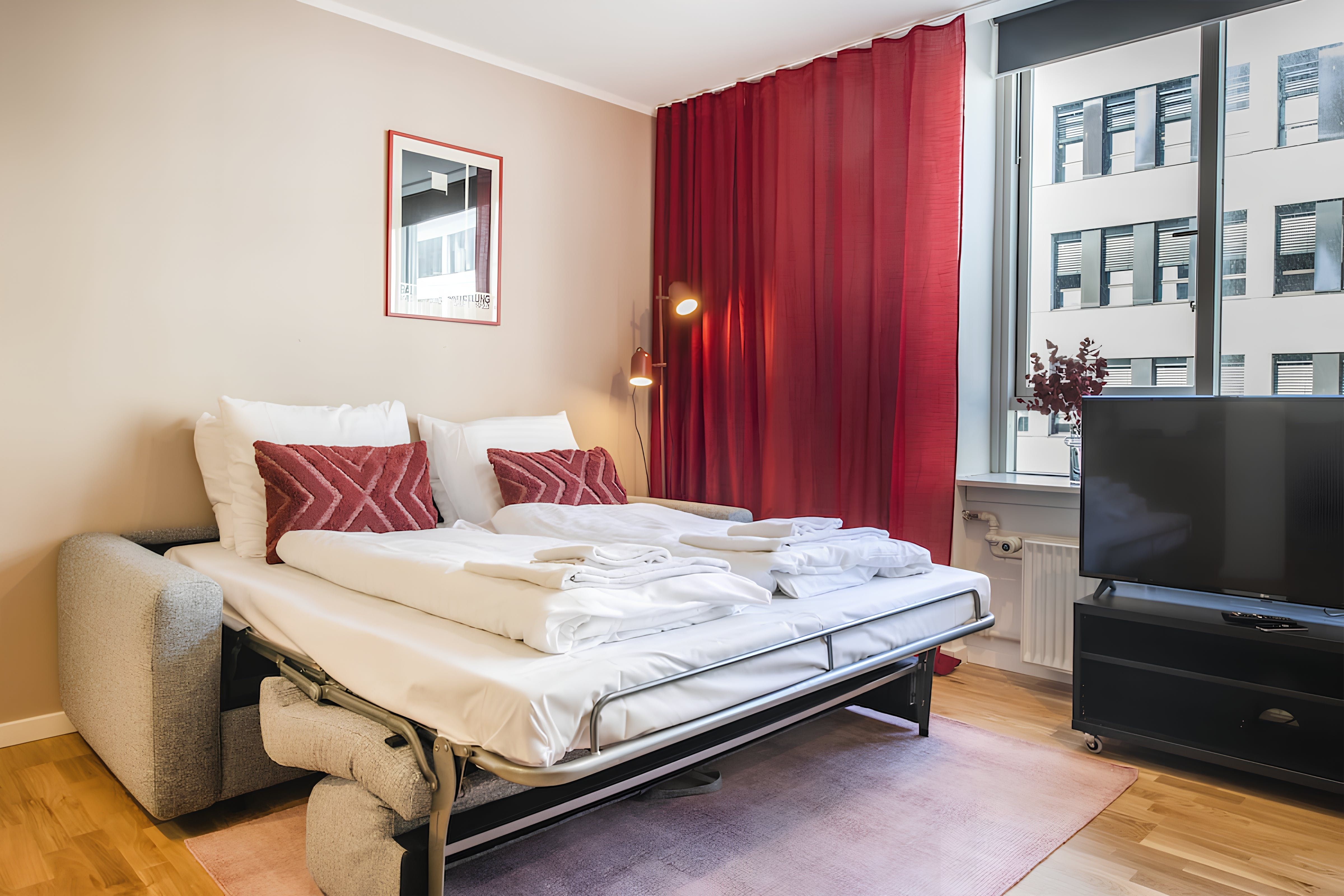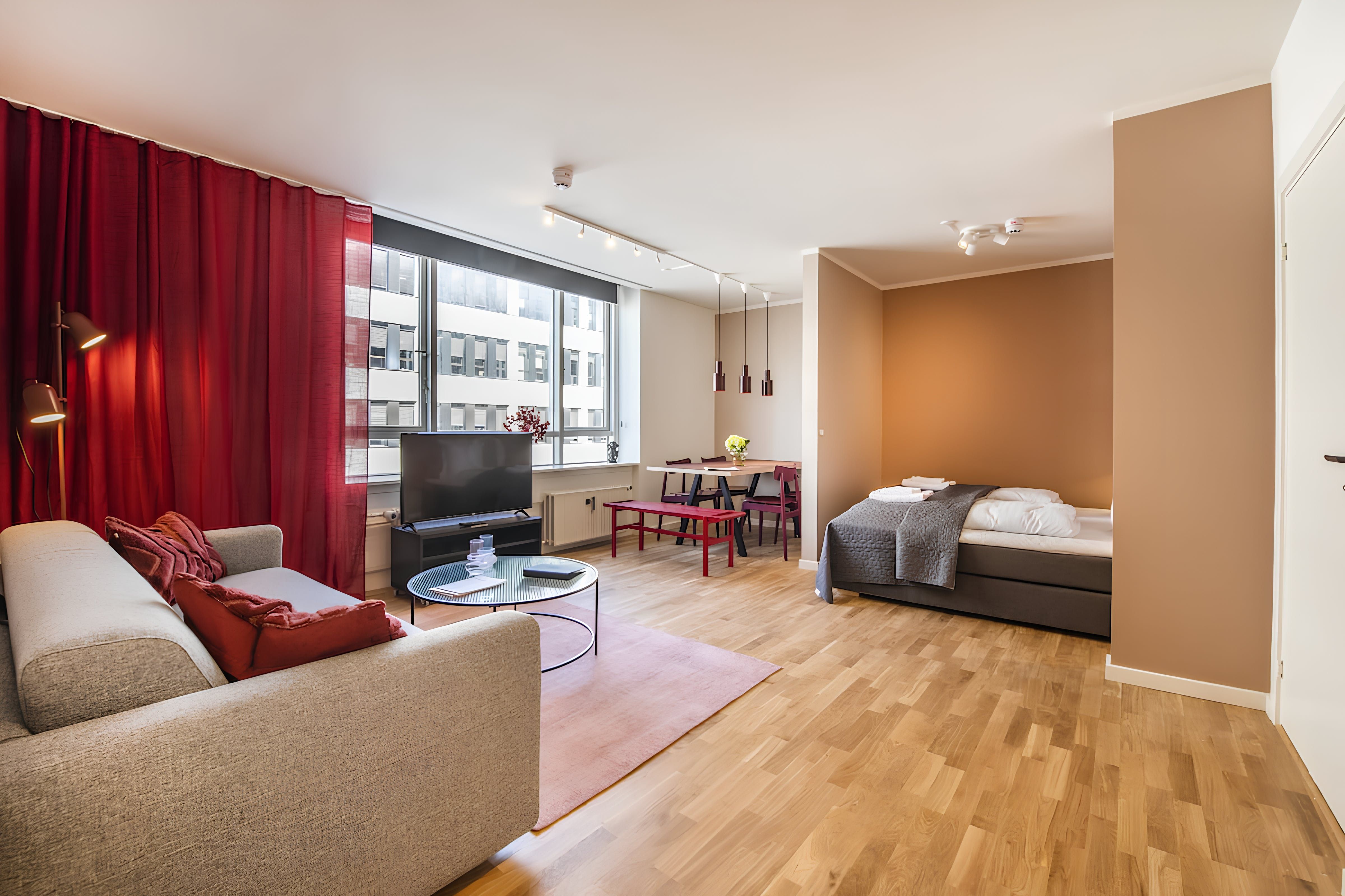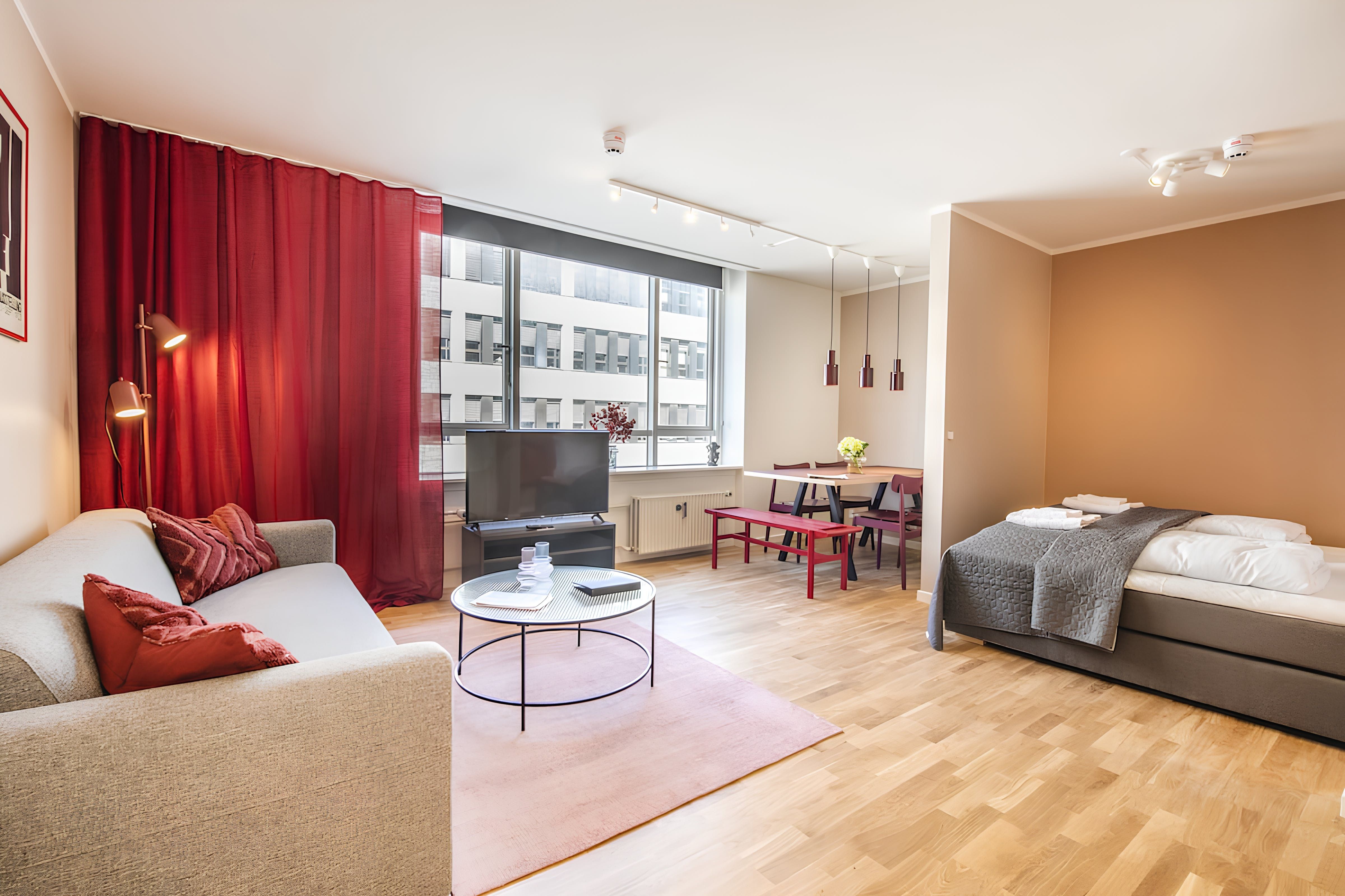 Comfortable, convenient and chic, this apartment ticks a lot of the right boxes. Whether you're on a business trip or travelling for leisure, this central location means you can easily explore Copenhagen by public transport or on foot – Tivoli Gardens is less than a ten-minute walk. The kitchenette is handy for preparing light bites, and the decor here is sleek and appealing. Two guests will be sleeping on a sofa bed and the second bedroom is open to the living area, which isn’t the most private but might suit groups on shorter stays.
