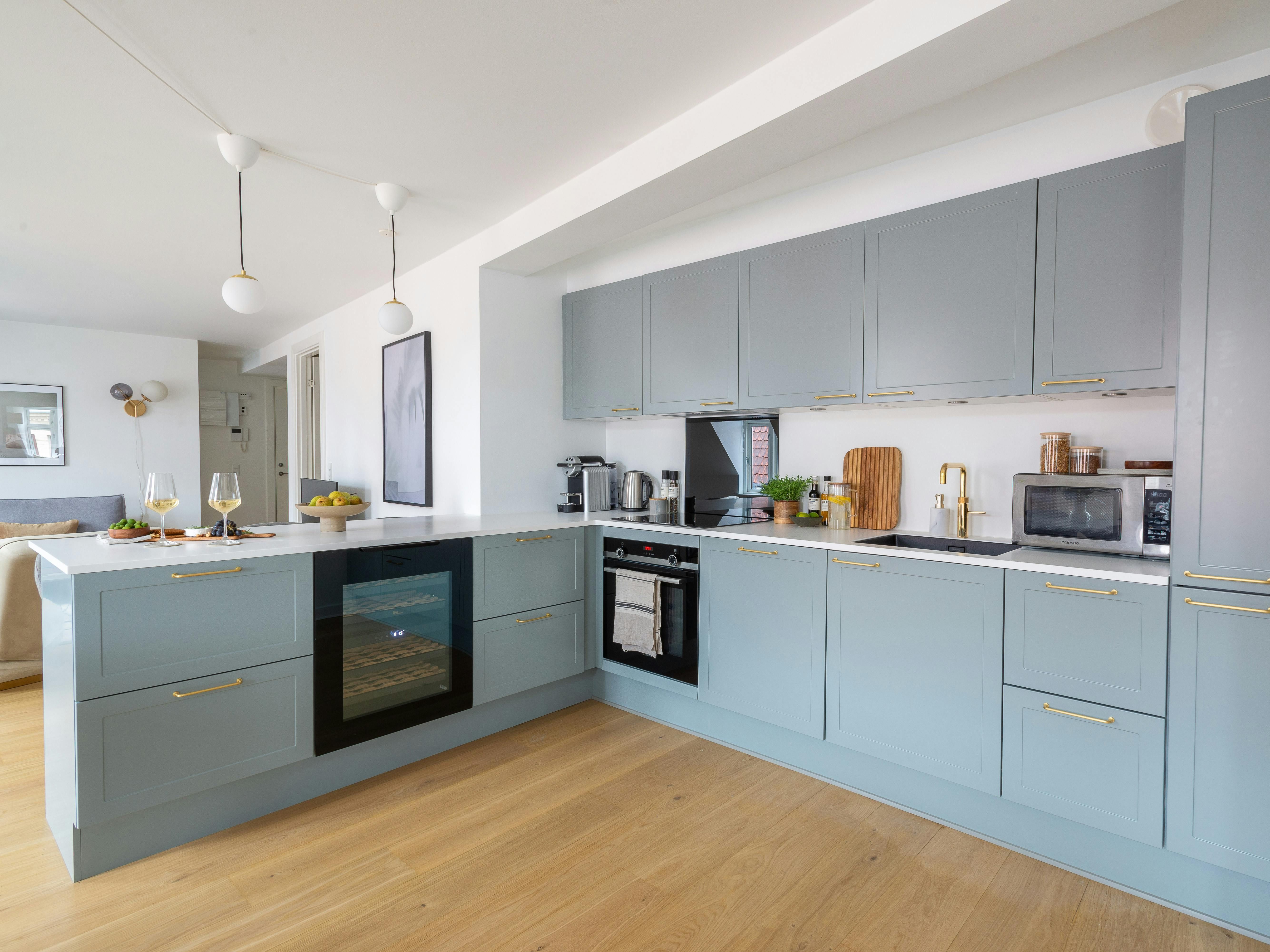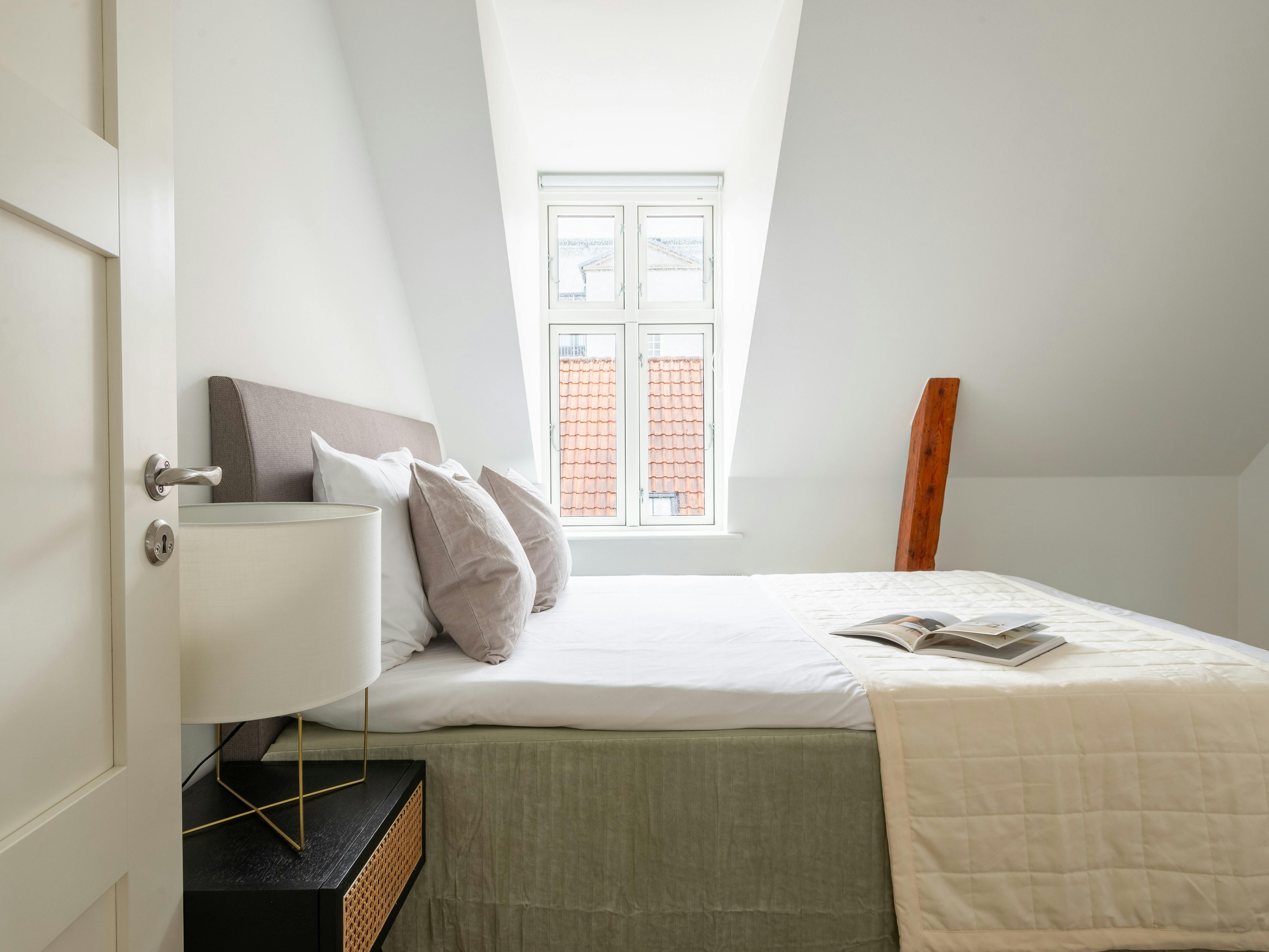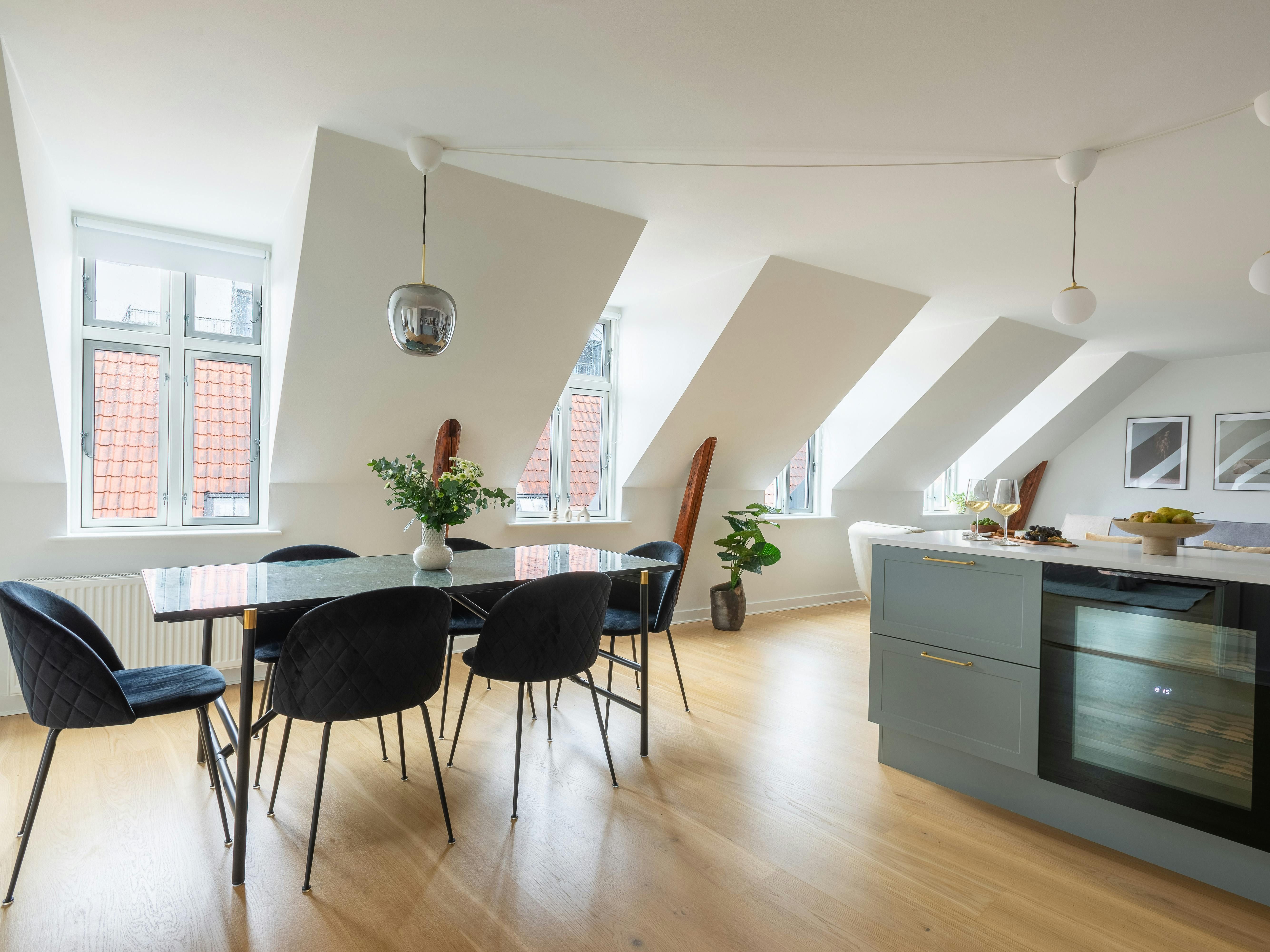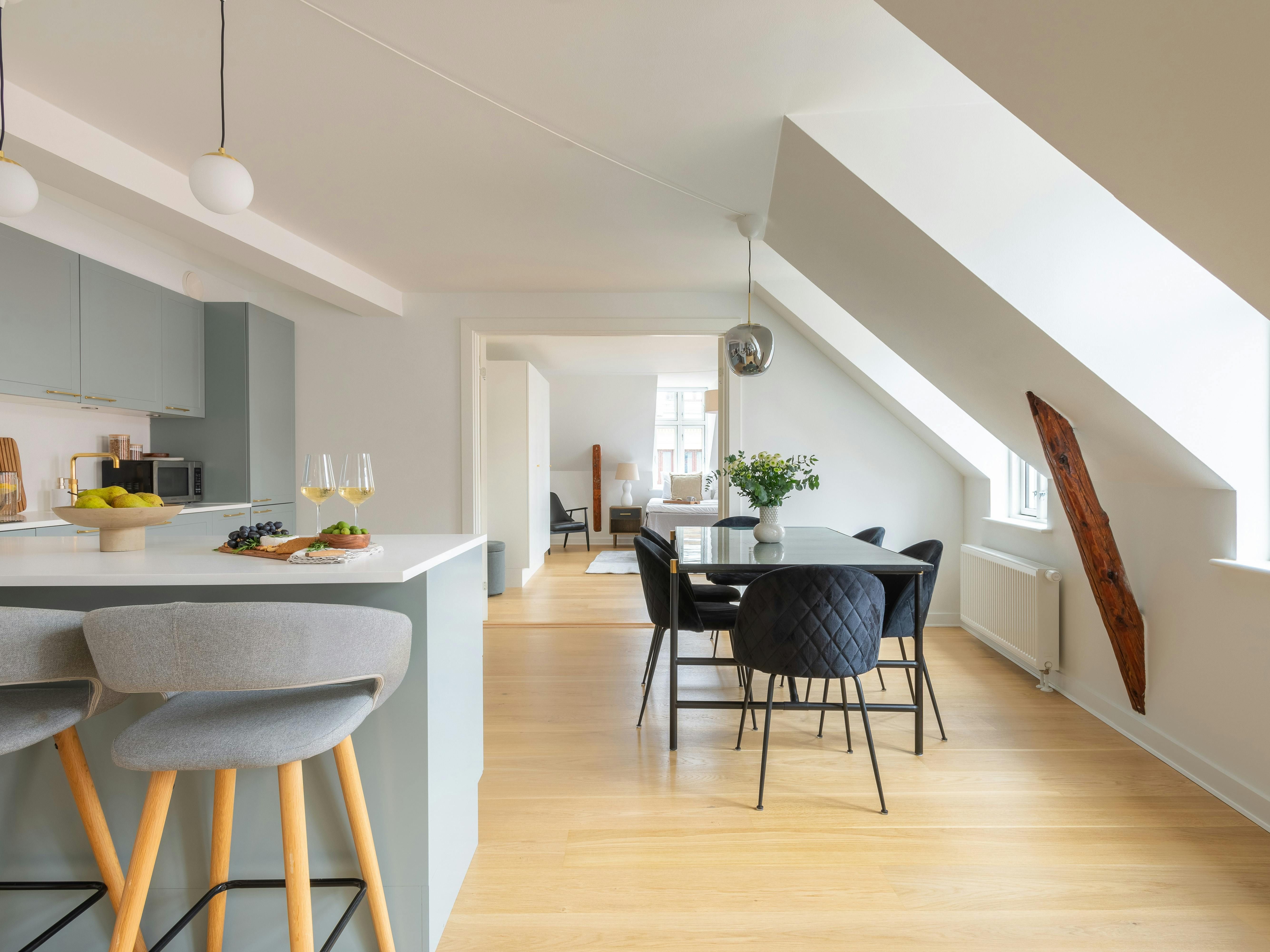 Downtown Copenhagen apartments with outdoor space are a rare find, so itβs no wonder this light-filled home with a shared rooftop terrace caught our eye. All the sightseeing hotspots, including Nyhavn Harbour, are just a stroll away. After something more authentic? The food markets of Torvehallerne are close by to pick up local ingredients to rustle up brunch back at home in the made-for-action kitchen. It's worth noting there's a lively bar below this historic apartment building β but in central Copenhagen, this is all par of the course.