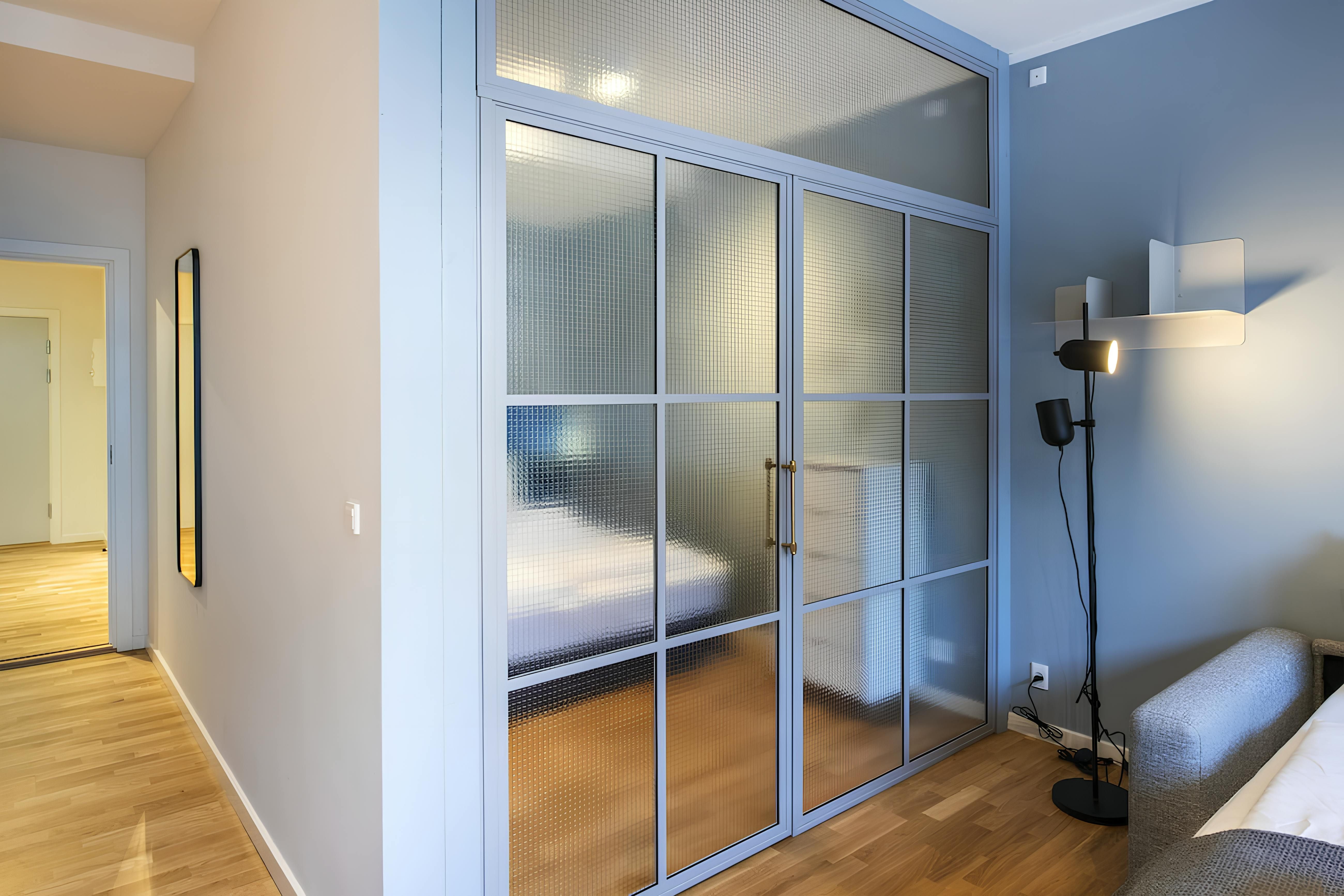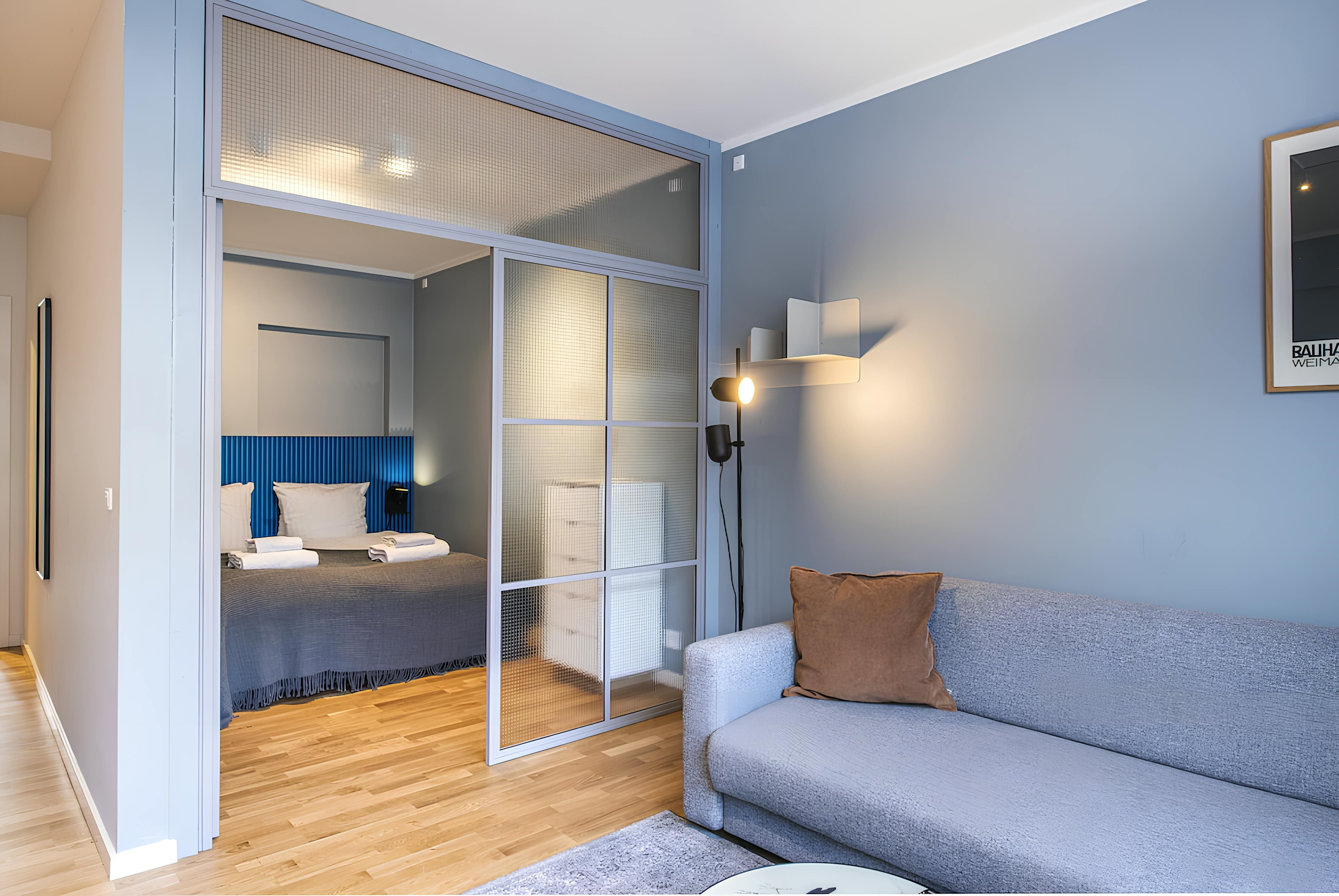 *A glass partition separates the bedroom and living space, so it's not completely private.