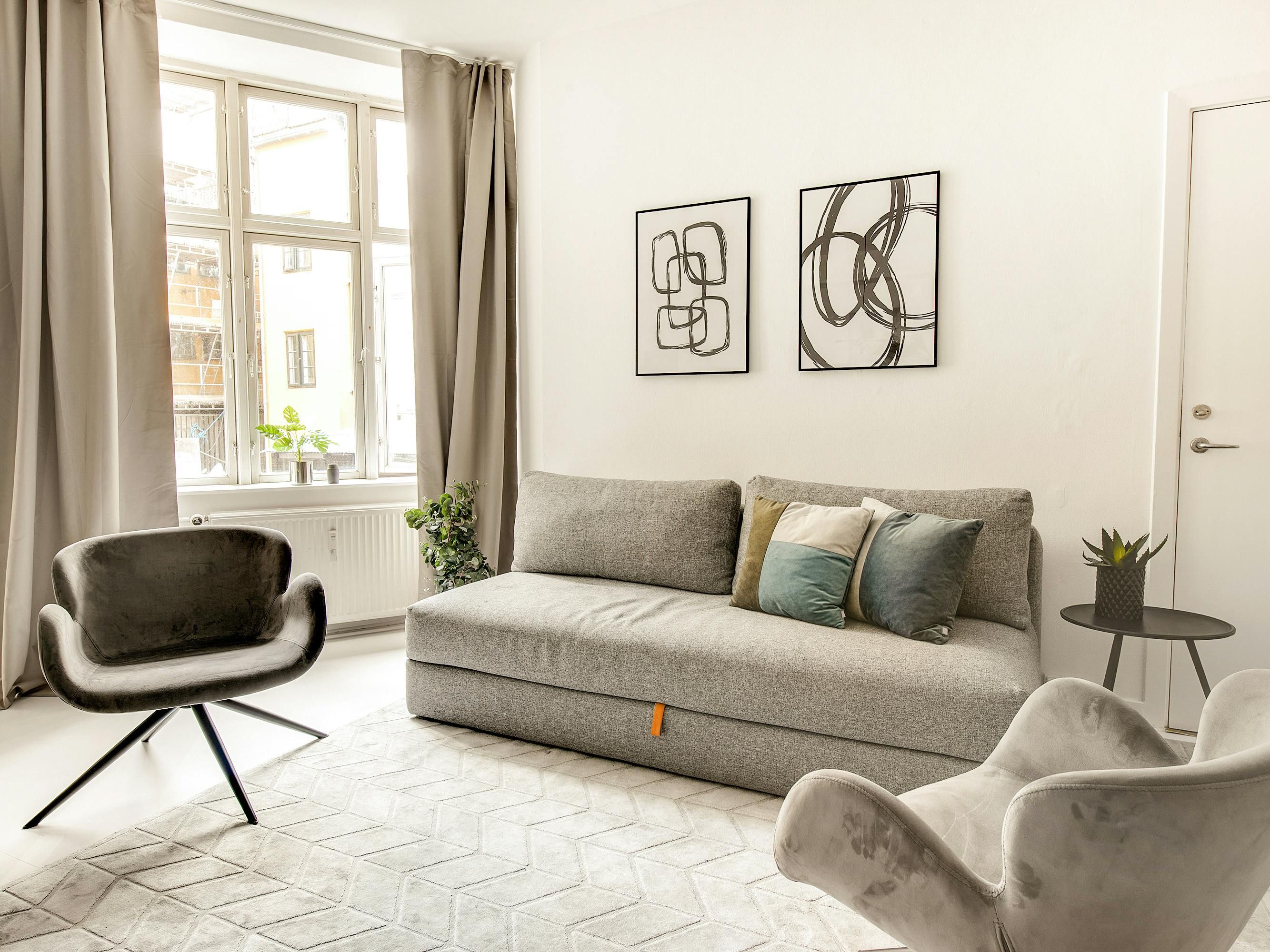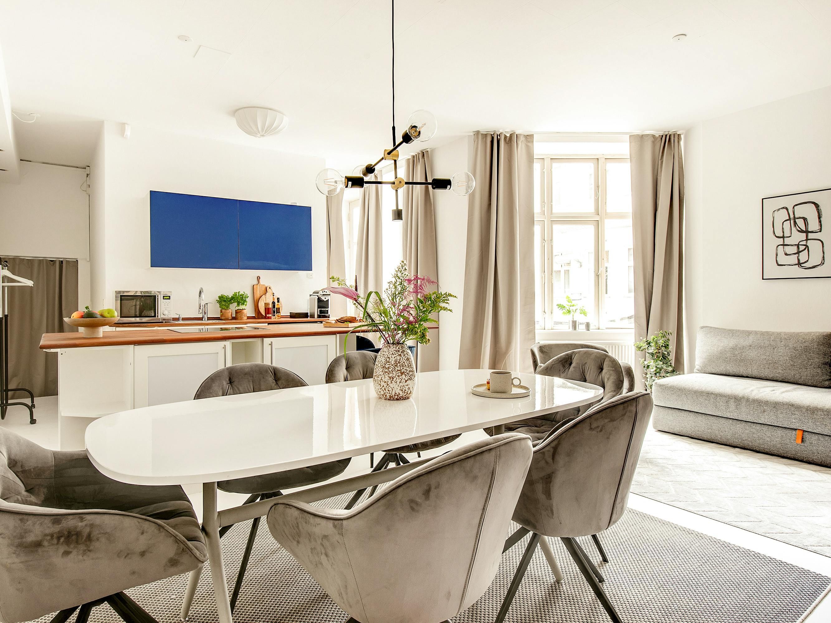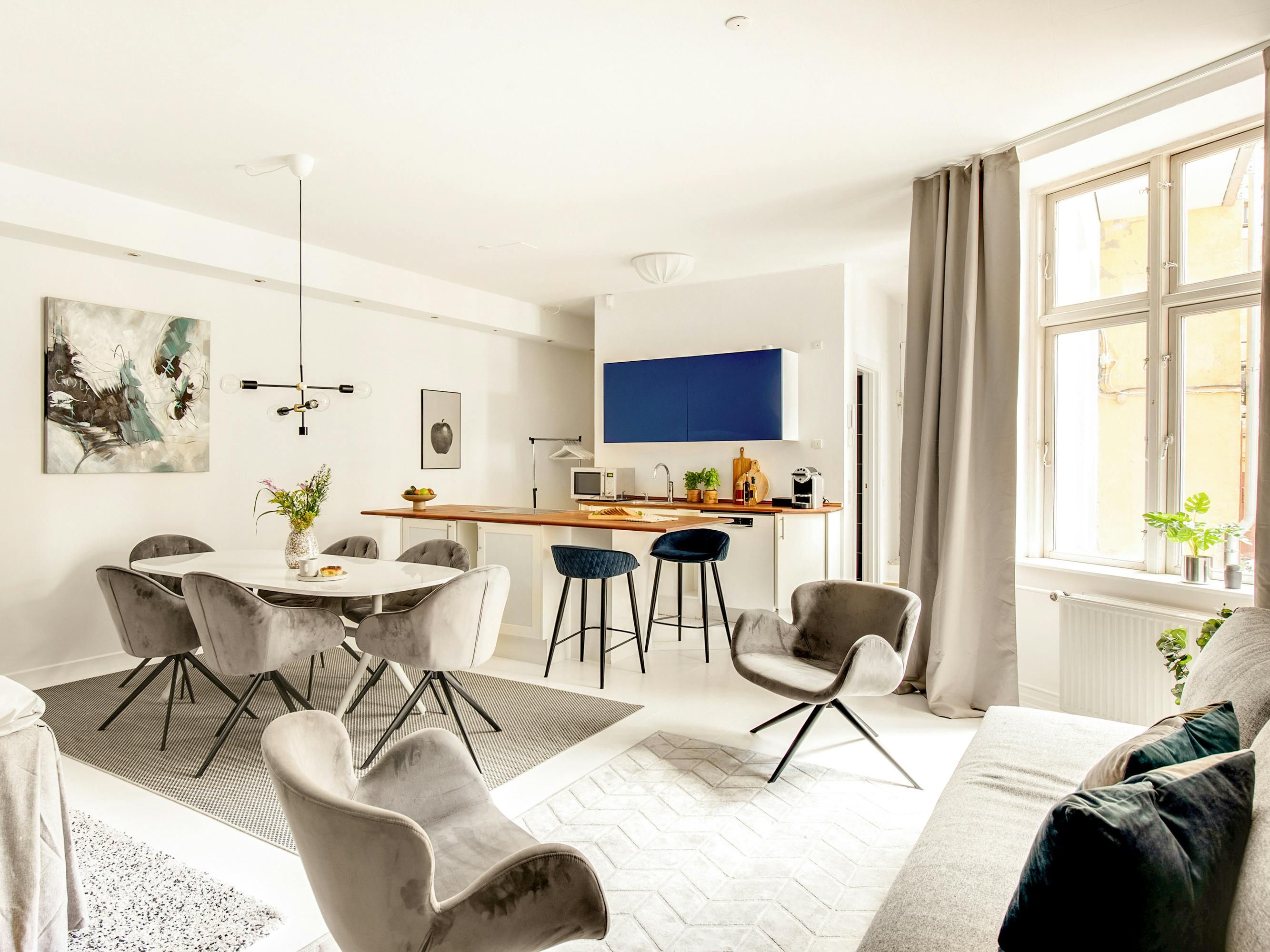 The studio apartment is not only stylish, but it is conveniently located in the heart of Copenhagen. Whether you want to stroll around Nyhavn, get the adrenaline pumping in Tivoli Gardens, or do some shopping on Strøget, attractions are at your fingertips here. Of course, being so central means noise is likely – especially as there are bars and restaurants nearby. Still, the layout is pretty roomy for a studio, with separate spaces to cook, dine, and chill out. A sofa bed is available if needed, though we think this home is best for two.