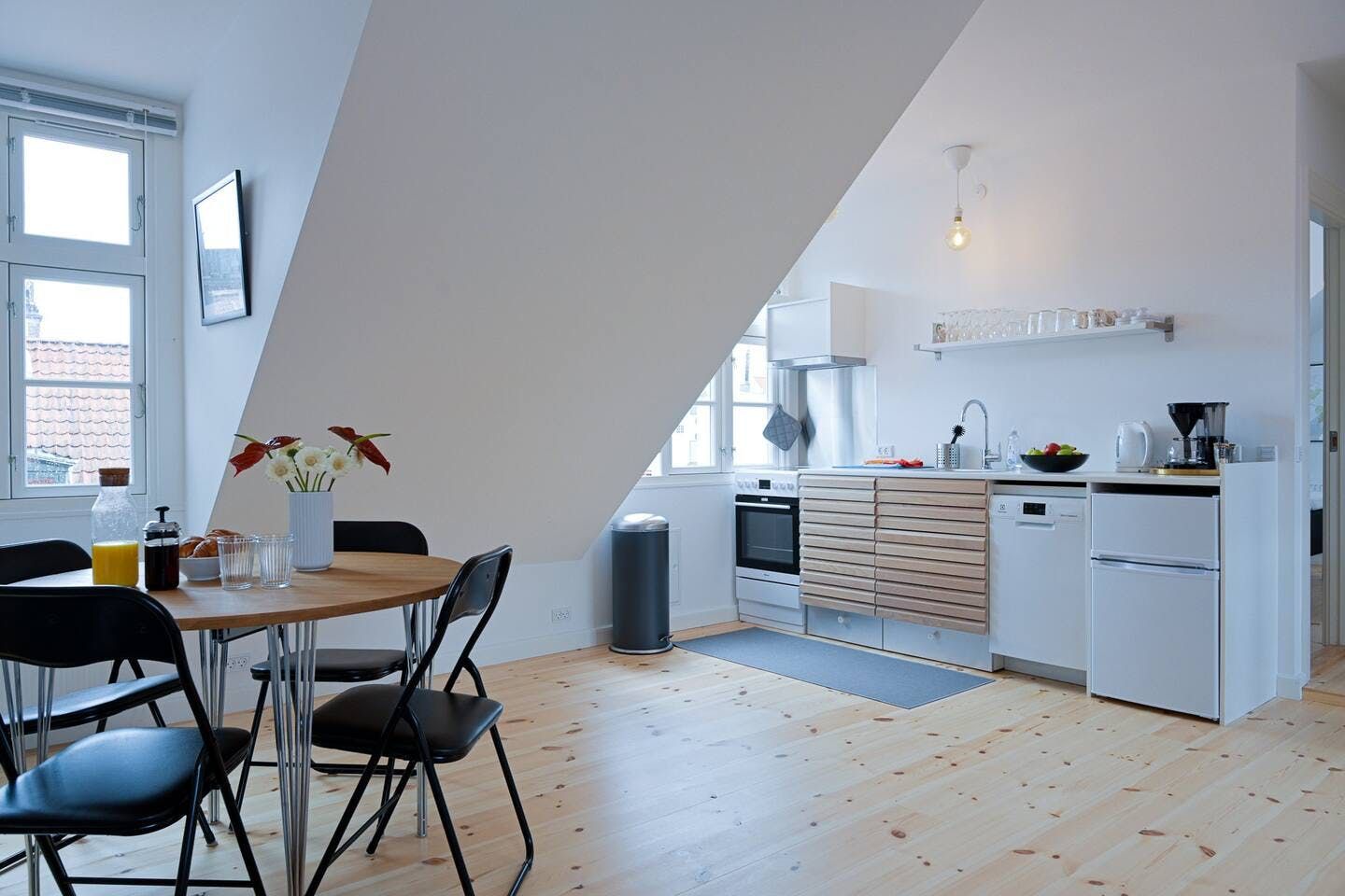 Embrace the laid-back maritime atmosphere of the neighbourhood during your stay at this unique, open-plan apartment. Its enviable location on the top floor means that it offers enviable views over the area, but it's illuminated from both sides, providing you with plenty of natural light to enjoy throughout the day. Not that you'll be in much with the delights on your doorstep.