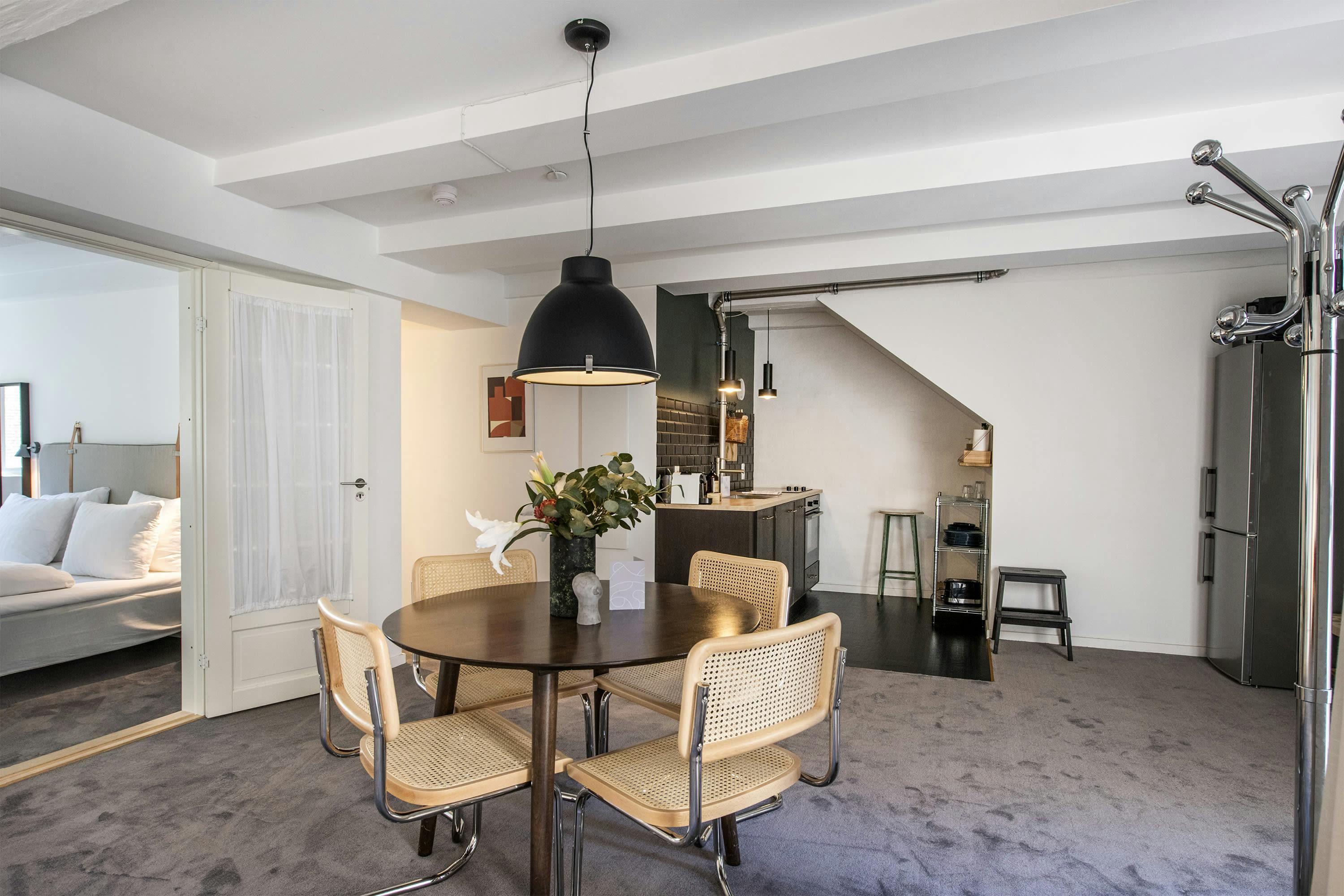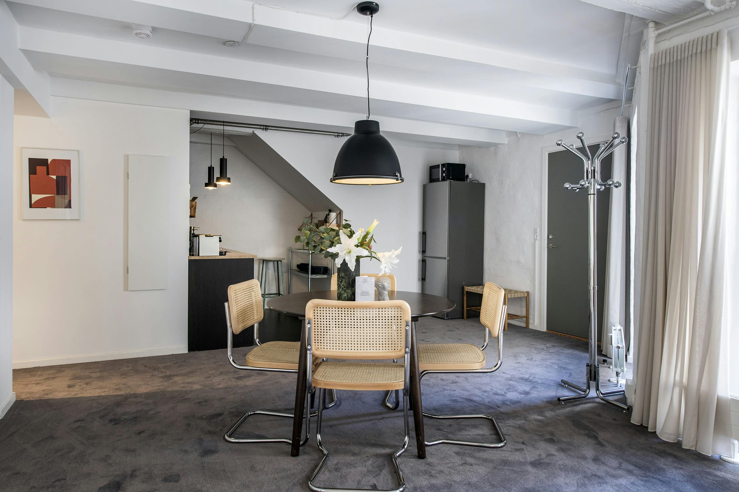 Modern, minimalist and powered by renewable energy, this apartment guarantees a stress-free stay in Denmark’s capital city. The heart of Indre By is easily accessible by foot, and the Marmorkirken metro station is a ten-minute walk away. As there is not enough comfortable seating for a group of five, we recommend this place for groups who are always on the go. The kitchen, however, is fully equipped with everything you need for home cooking, and your host can arrange cleaning services for an additional fee.