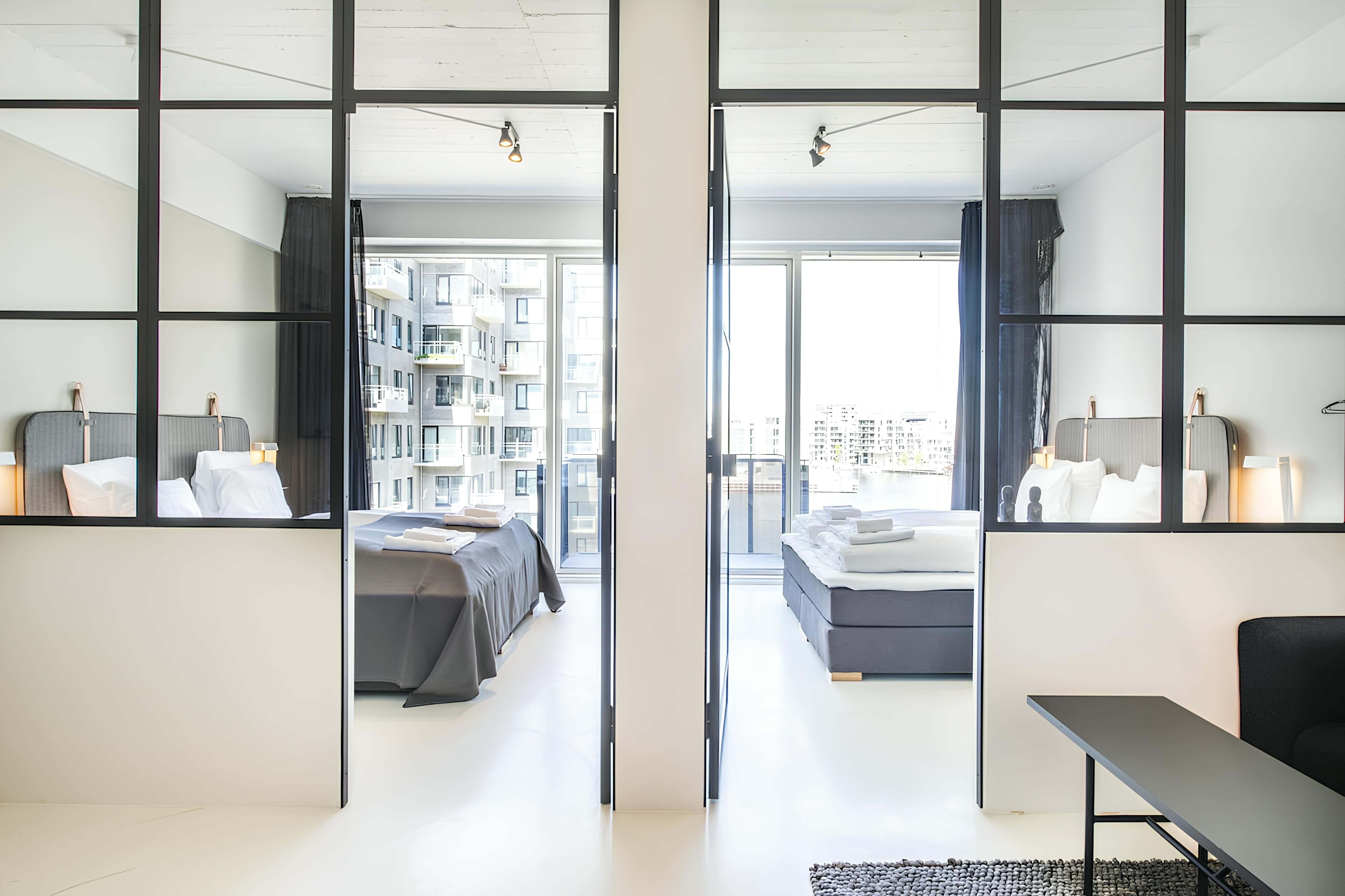 This modern Bryggen Syd apartment is perfect for a waterfront Copenhagen stay. Known for its swimming canals, this neighbourhood is a new development next to Islands Brygge, so you can expect plenty of opportunities for swimming, kayaking and drinking by the water. There’s a gym in the building, as well as a rooftop terrace – just the spot for sharing Danish craft beers. Inside this home, you’ll find a minimal and practical space with an inviting dining area and a private balcony. Your host can configure the bedrooms how you’d like, just let them know if you’d prefer a king-sized or twin-single arrangement.