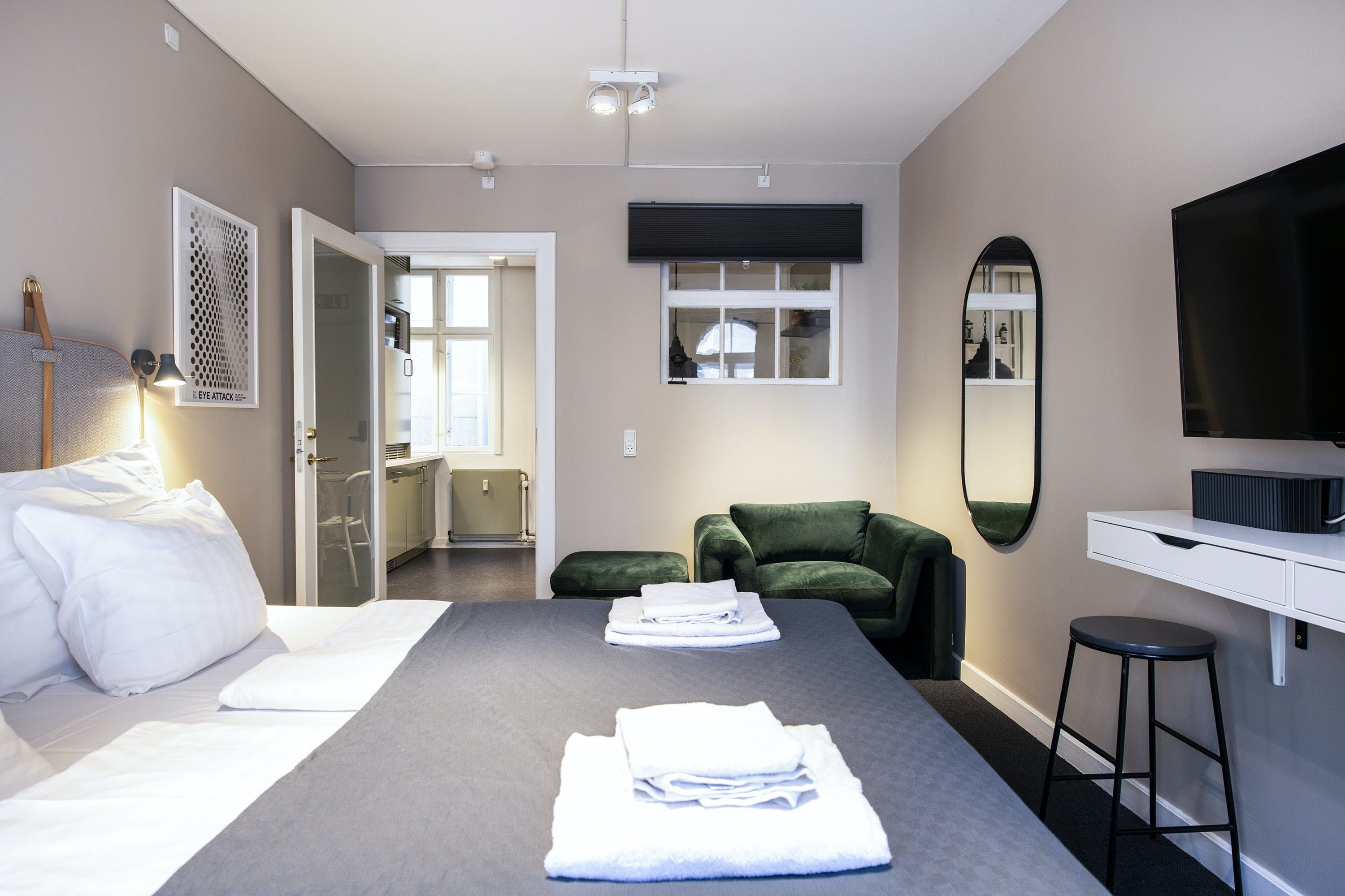 This Copenhagen bolthole may be pocket-sized, but it would work well for two friends or colleagues looking for a central base to lay their heads. There's little space for socialising, with no living room to speak of. But each bedroom has a cushy chair and the dining banquette in the compact kitchen is a cosy spot for breakfast, and the bakery nearby will keep the pastries flowing. Outside, Nyhavn's buzzy cafes and restaurants are just around the corner. Kongens Nytorv Metro Station is also within easy reach, ready for you to blaze a trail across the city.