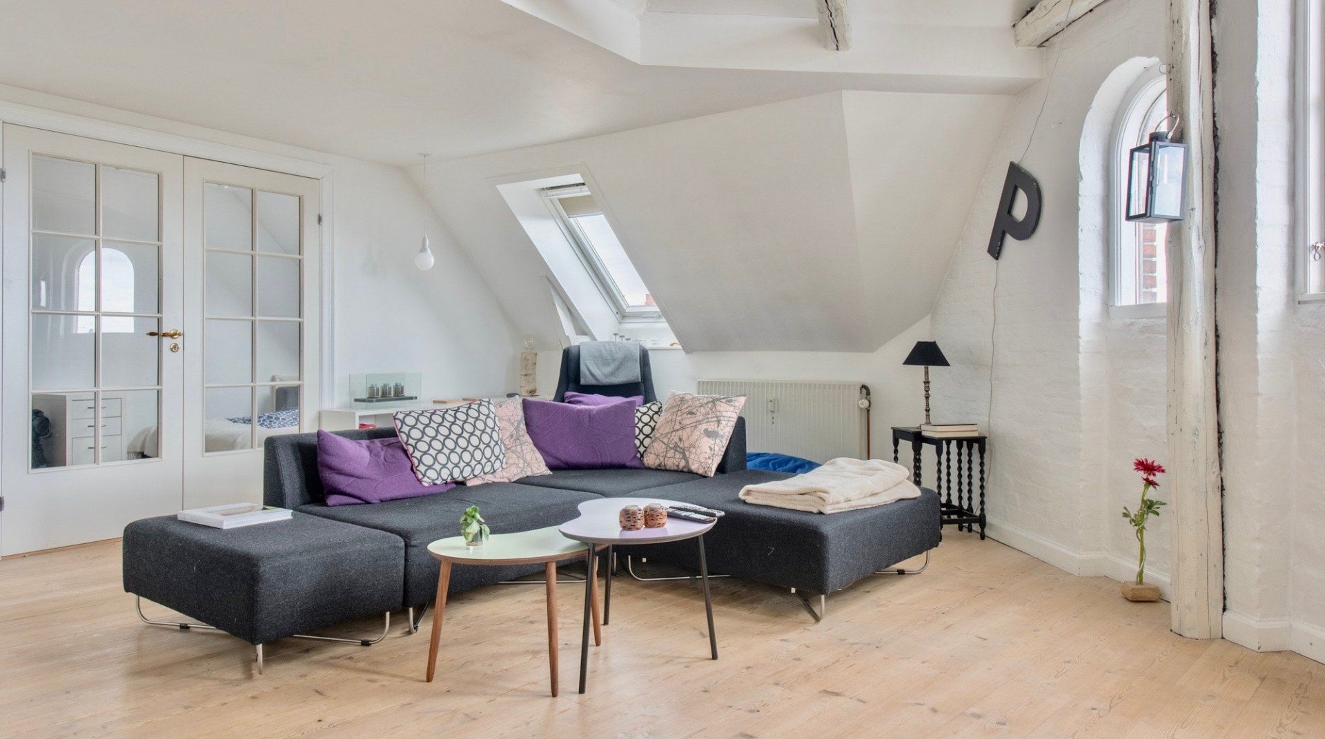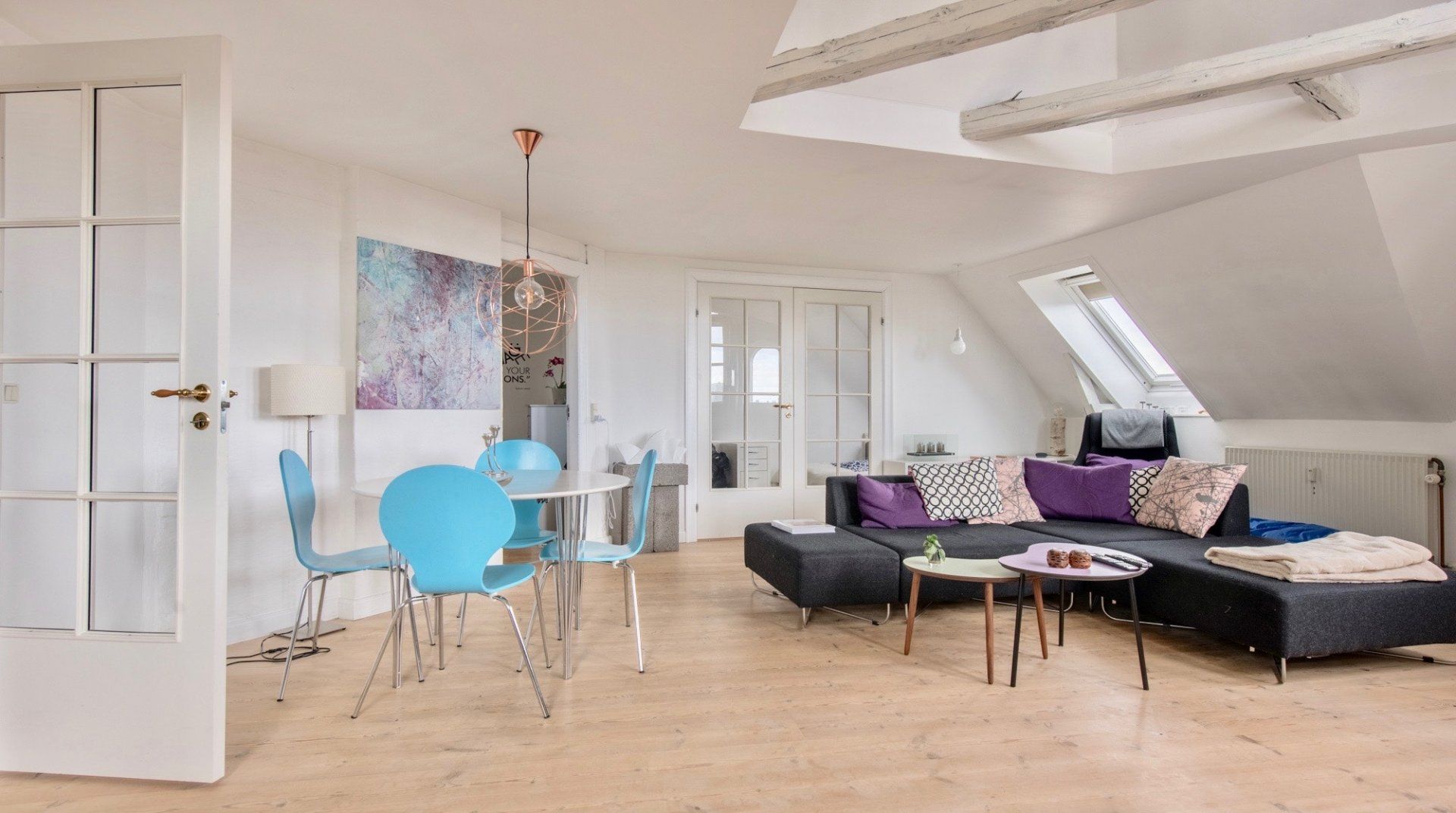 A bright and contemporary apartment set in a historic shell, this Copenhagen apartment is a coffee lover's dream come true. Equipped with its own coffee shop-style nook – perfect for morning breakfasts and afternoon pit stops. We love the white-painted wooden beams, exposed brickwork and sloped ceilings, stylishly paired with colourful touches and comfy textures. When you're not sprawled across the large "L" shaped sofa, take in dreamy views over the Copenhagen rooftops, which are well worth climbing up five floors of stairs for.
