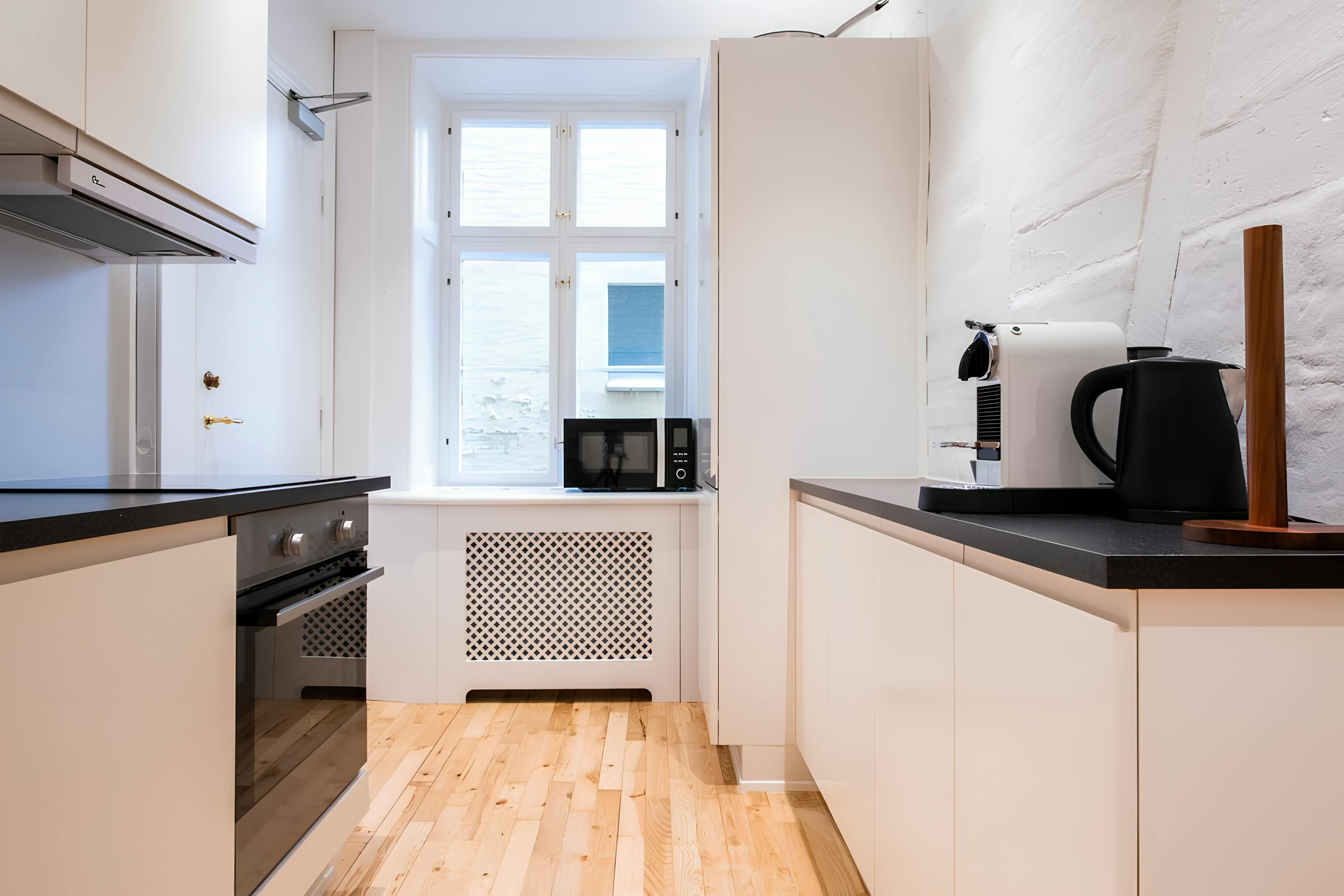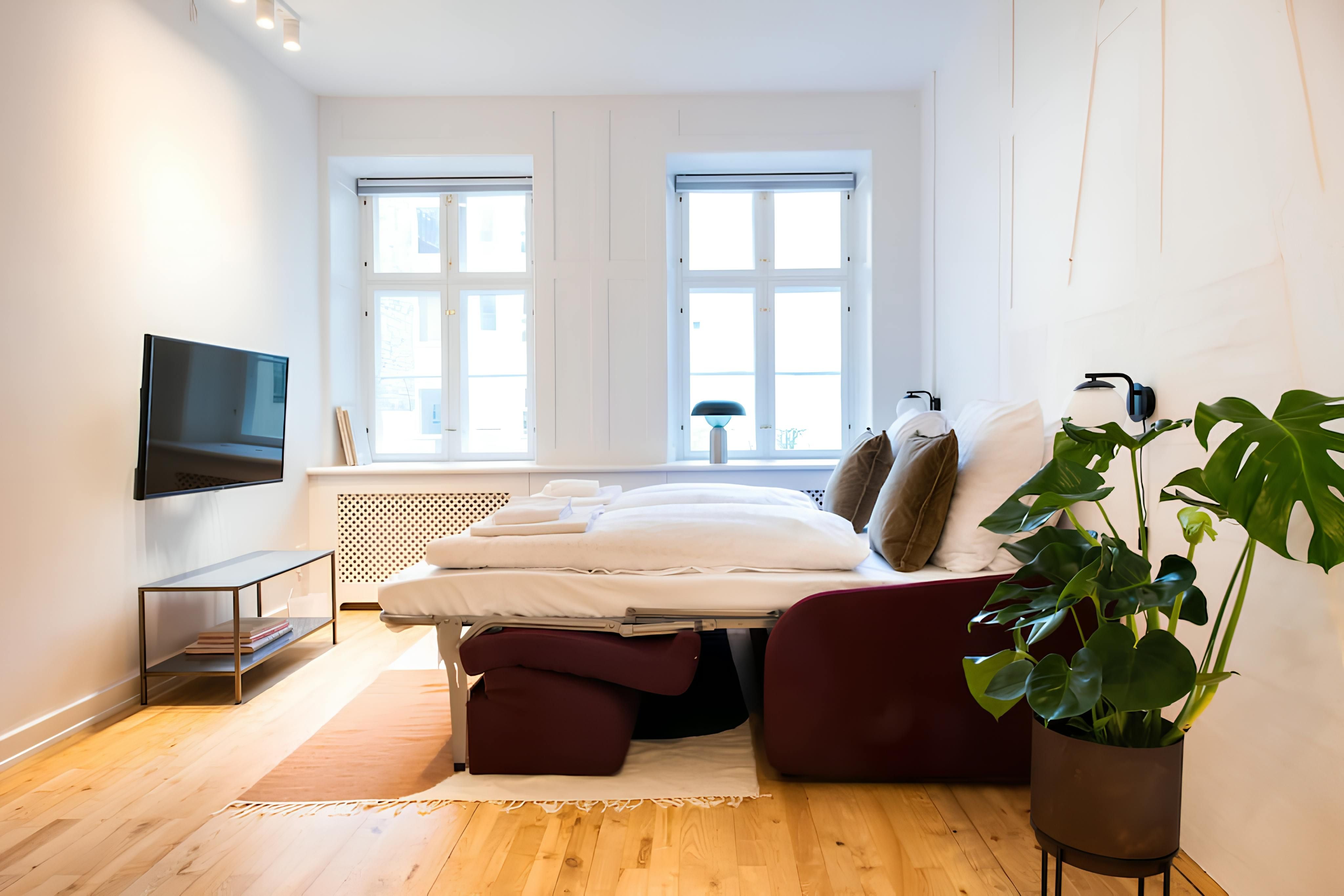 Near Copenhagen's historic town hall, this apartment occupies an enviable spot in the heart of the capital. From here, you'll find plenty of popular tourist attractions and cultural hotspots nearby – Tivoli Gardens and Rådhuspladsen Metro station are less than a five-minute walk away. Return home through a quiet courtyard and kick back in the sleek living area. The design is chic and minimalist, with a fully equipped kitchen that adds the potential for home cooking. It's worth noting that the bedroom is a little small, but we think the pad is an attractive place to hang out after days spent sightseeing.