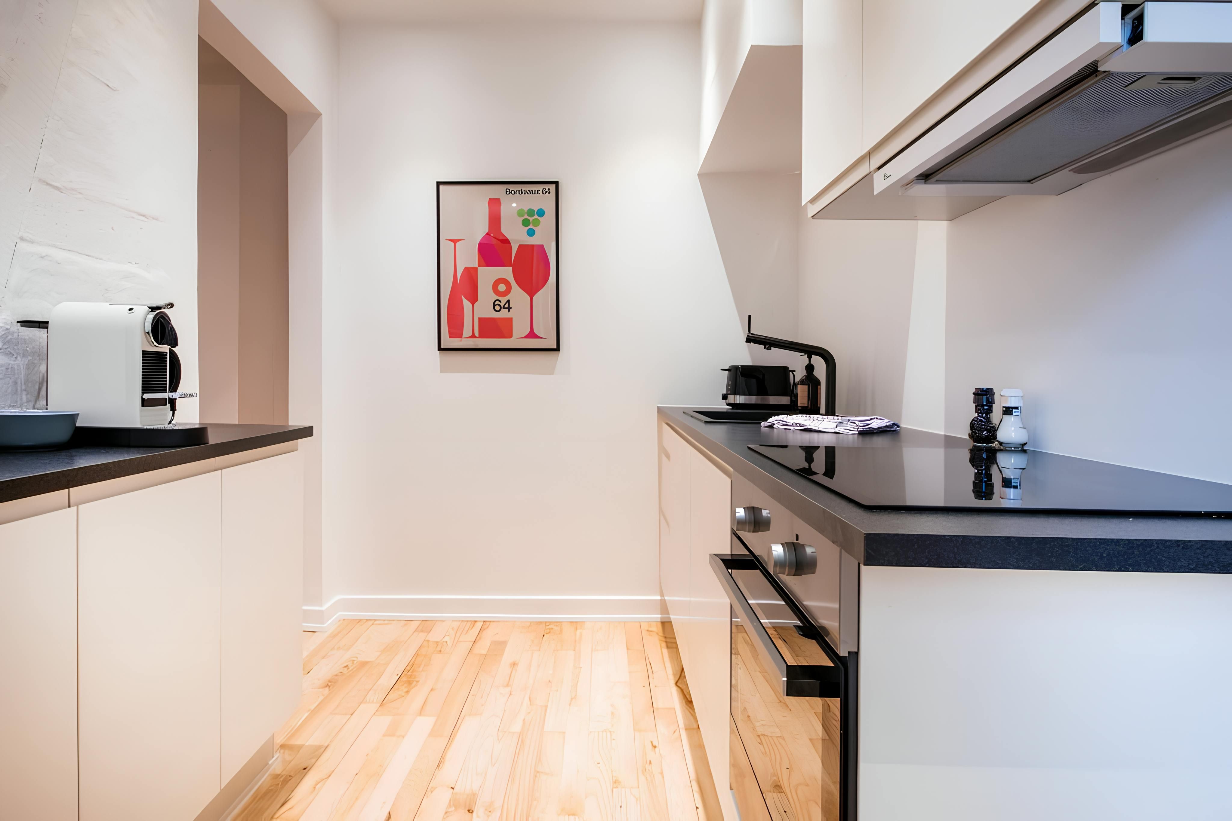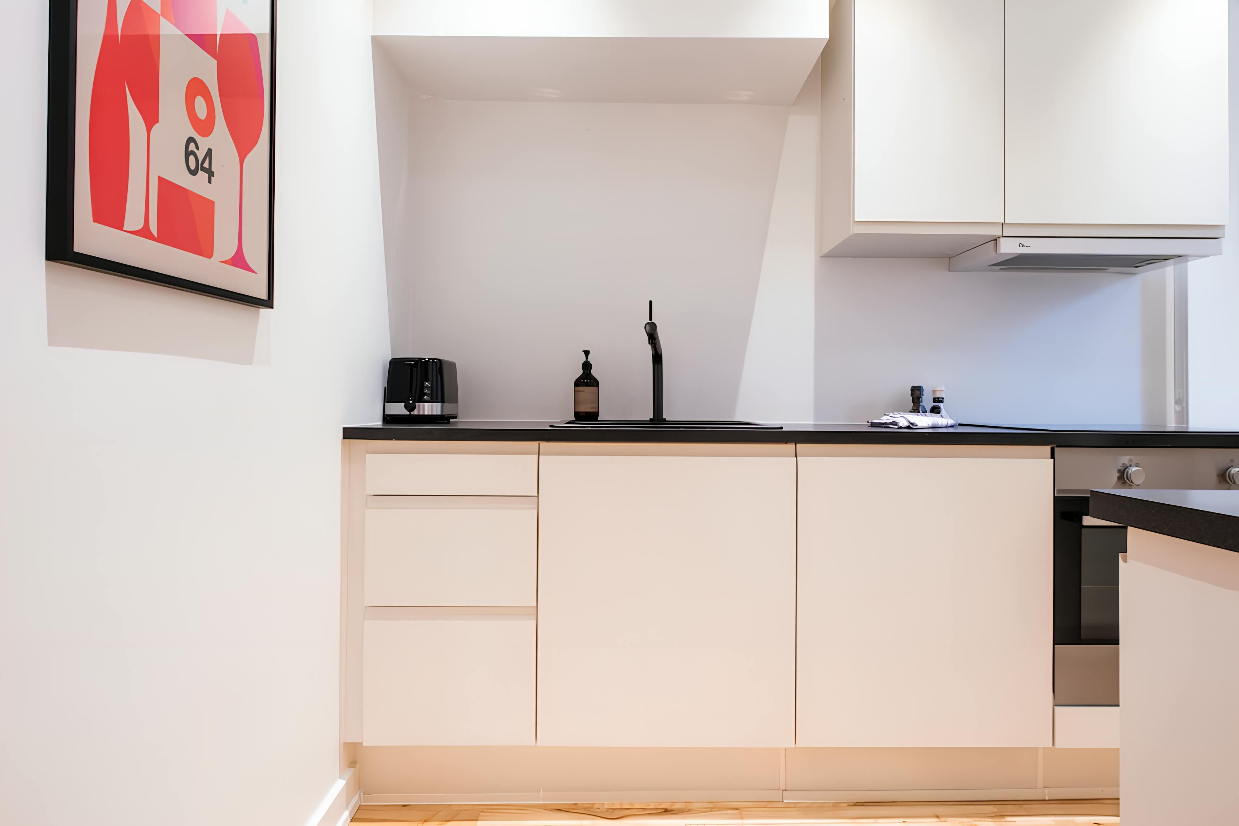 Home truths: *You'll be able to check yourself in here. *At full occupancy, two people will be sleeping on a sofa bed in the living area. *While there is a lift here, you'll need to climb a short staircase to enter the apartment building. *Given the home's central spot, expect to hear some street noise throughout your stay. *If you're travelling for work, the dining table doubles up as a laptop-friendly workspace. *The bedroom is on the small side and the bed is pushed against the wall on one side. *The bed can also be split into singles if needed. *Your host can provide a cot and high chair for free upon request. *The apartment doesn't have a washer/dryer.