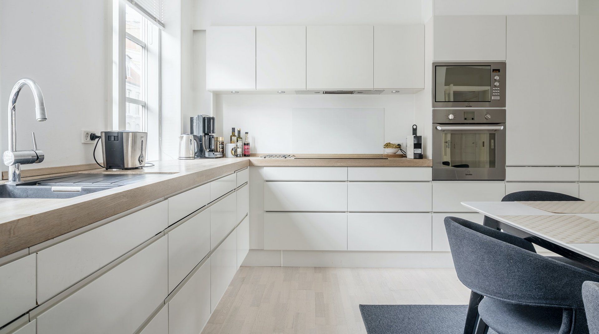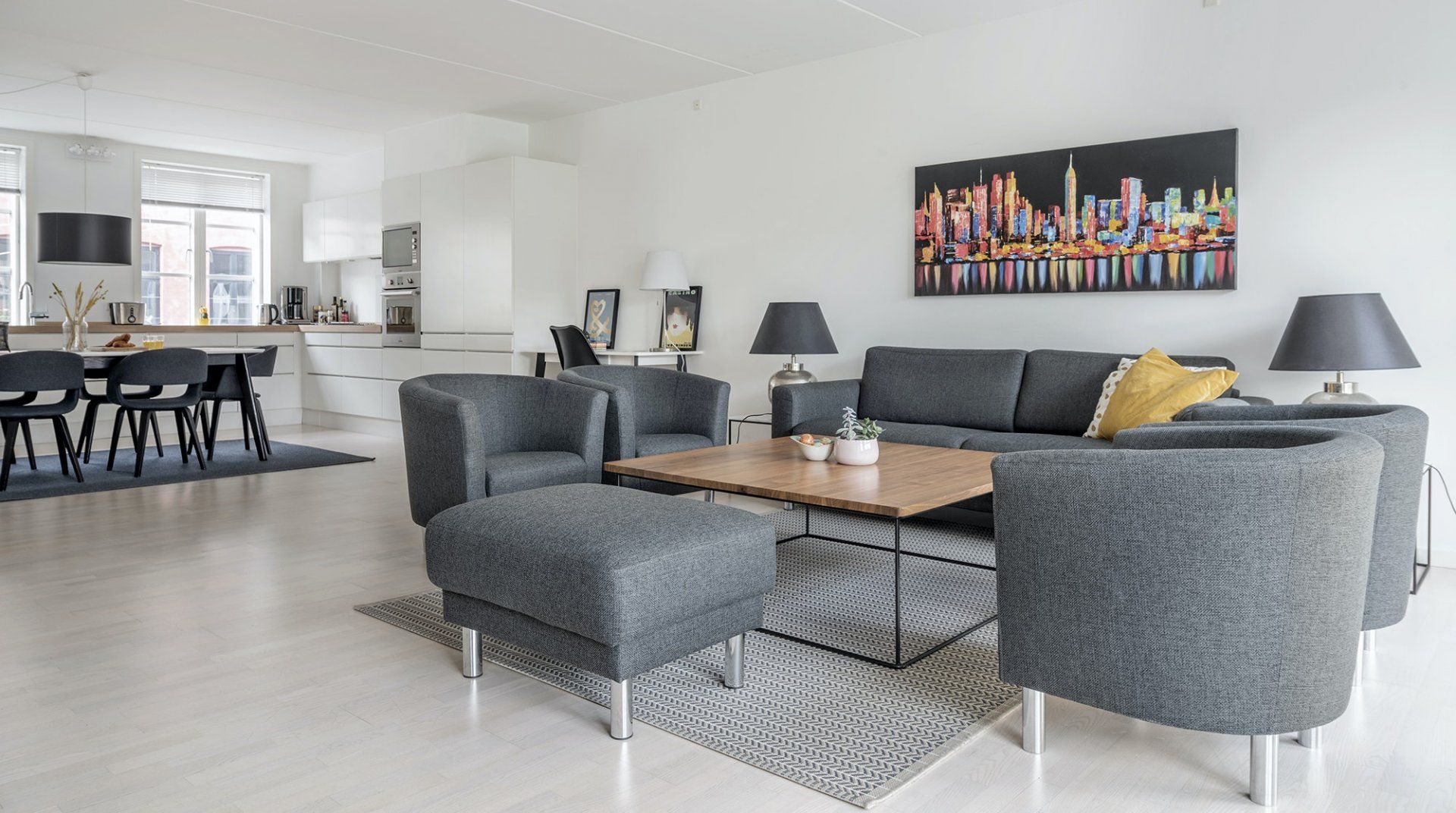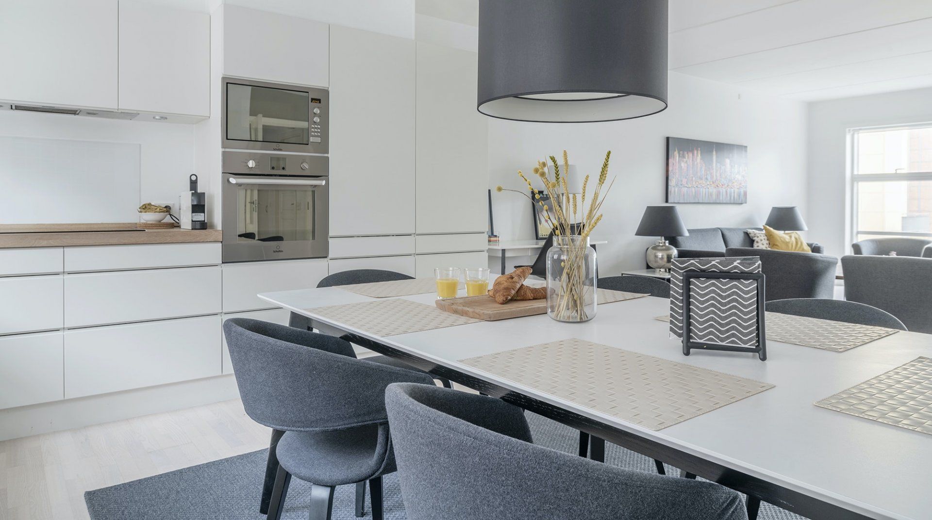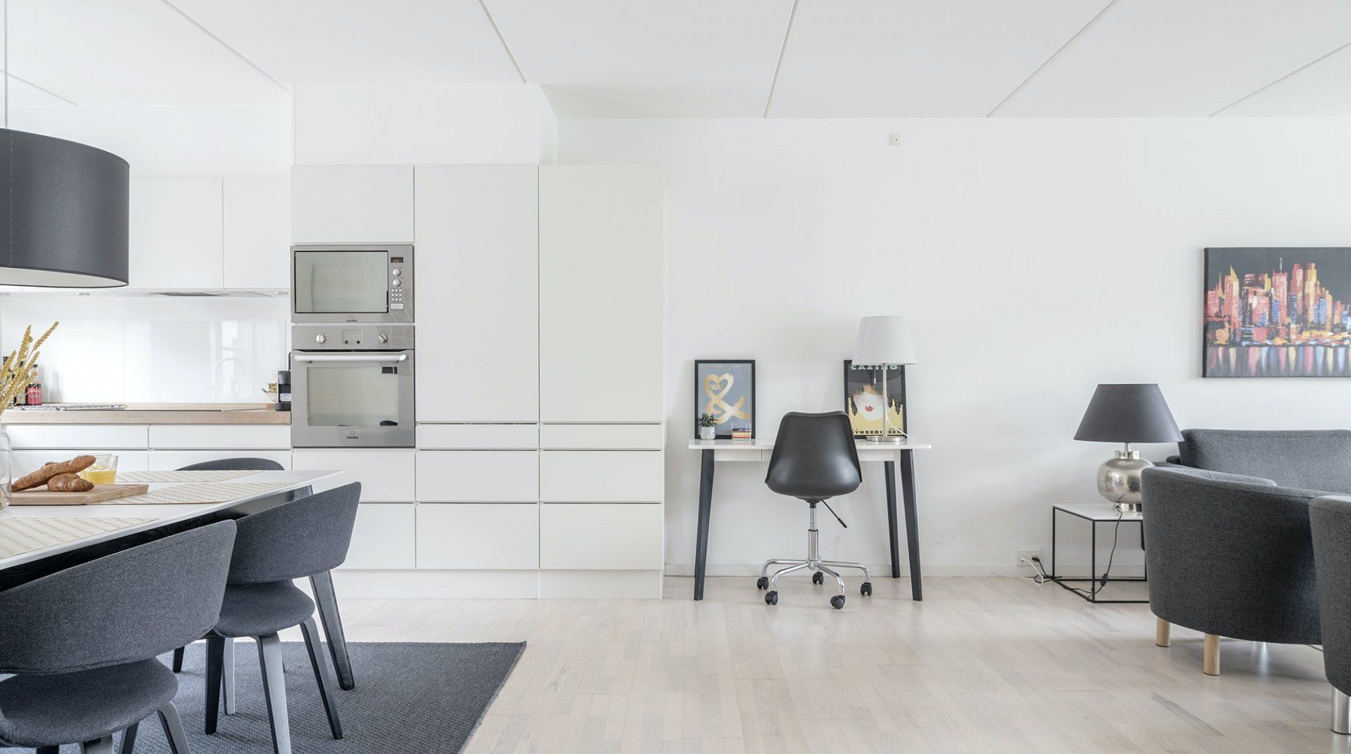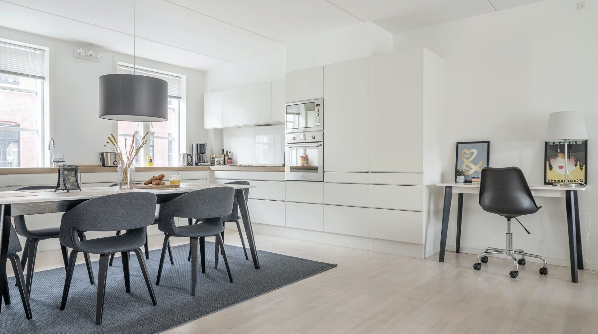 Pictionary is just a five-minute walk away from Copenhagen’s Central station, which means that you’re very well-connected. Vesterbro is also lovely, especially if you’re looking to sample some new restaurants or coffee shops – or want to be in walking distance to Tivoli and Rådhuspladsen. It’s not the most characterful home on our books, but we like that it feels welcoming and bright. The kitchen is definitely the highlight – it’s large, modern, and well-equipped for cooking.