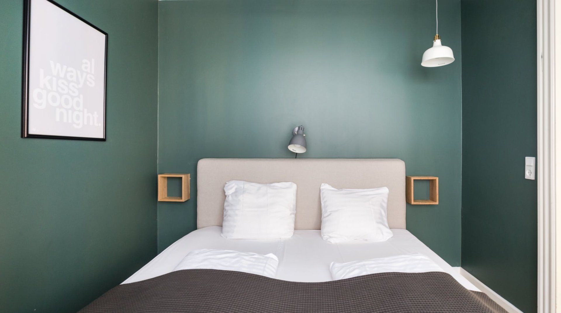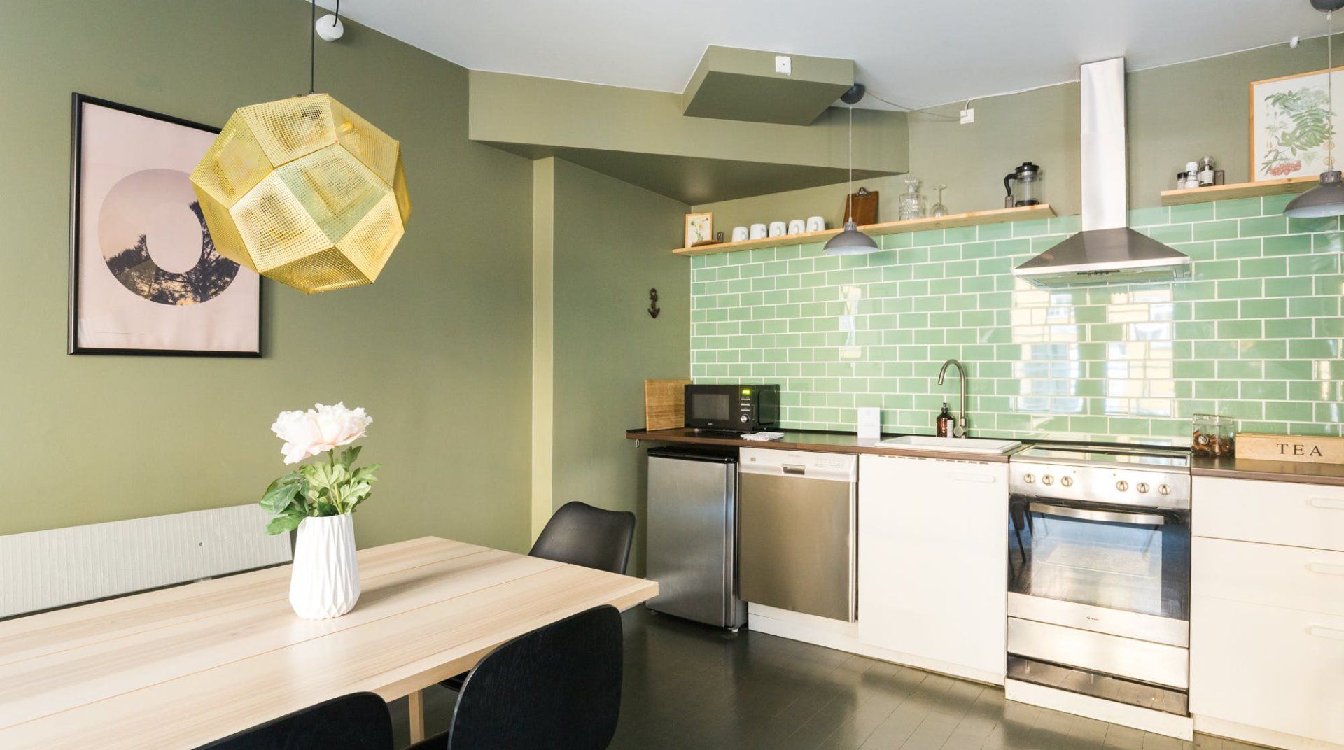 A whirlwind of green hues, this snug home brings an instant smile to our faces. It's warm and comfortable, with a large dining table perfect for sharing family meals and a cosy sitting area where you can kick back and relax with a glass of wine and Netflix. A small collection of books and board games only add to the homey feel, as do the large windows which flood the lounge with natural light. One of the bedrooms is rather tiny and the bathroom isn't the biggest we've seen, but the brilliant location more than makes up for it. We love this area's historic charm and quiet streets, yet buzzing restaurants, cafes and shops are all a short stroll away. You're also within walking distance to many of Copenhagen's most beloved sights – Amalienborg Palace, Nyhavn, The Little Mermaid, Frederik's Church, you name it, chances are you can get to it easily. Best of all? The Danish queen lives just down the road, so if it's good enough for royalty, it's good enough for us.