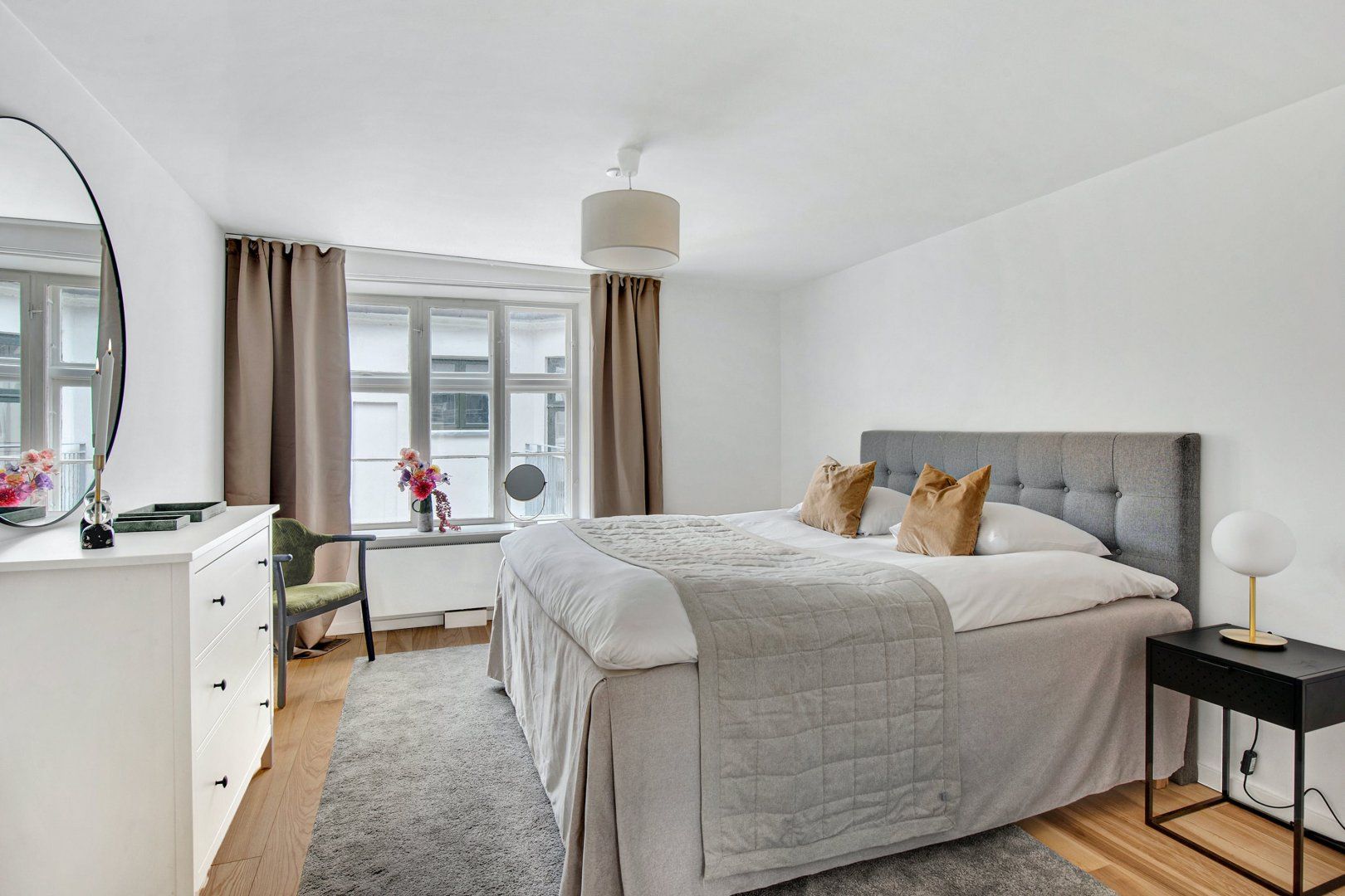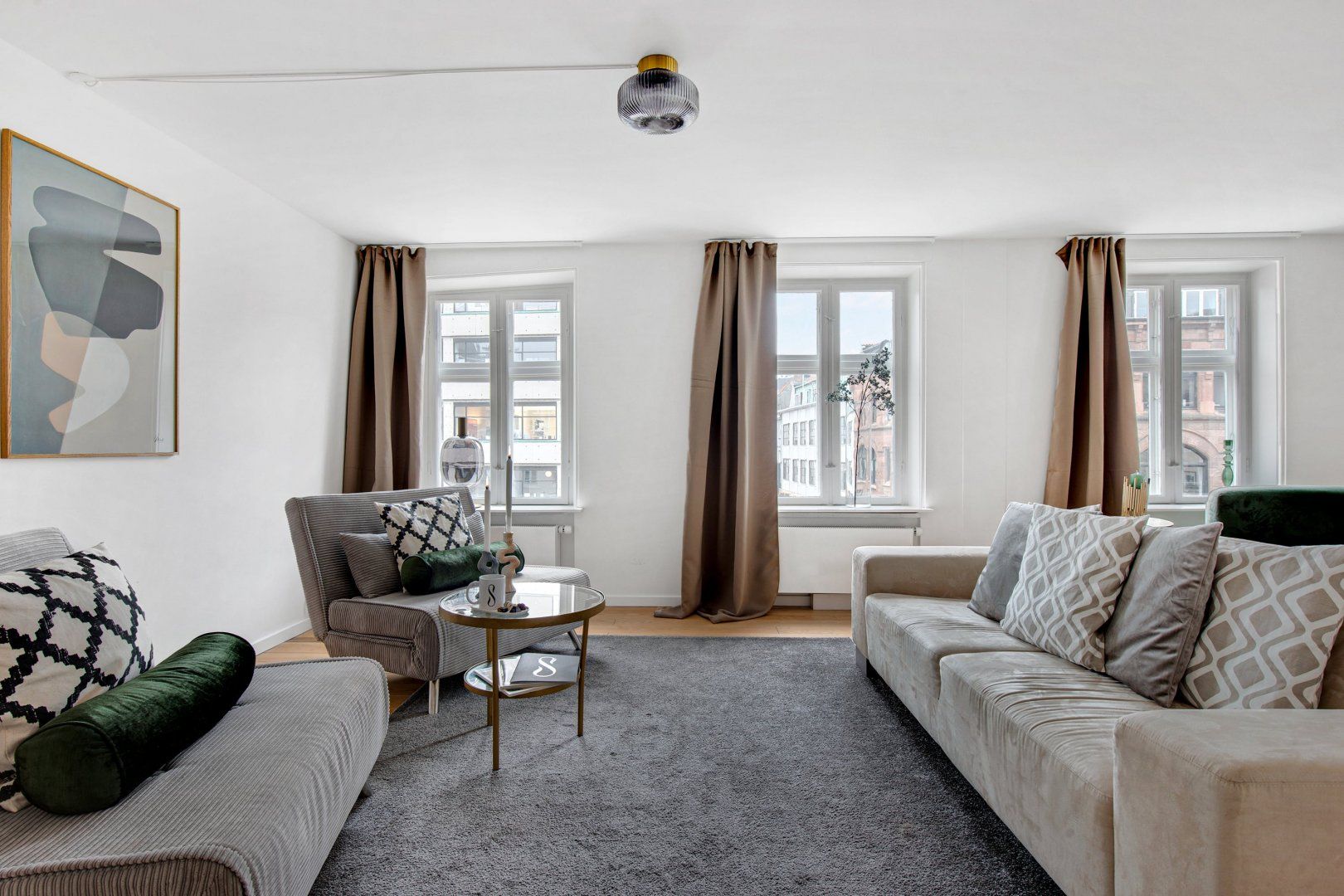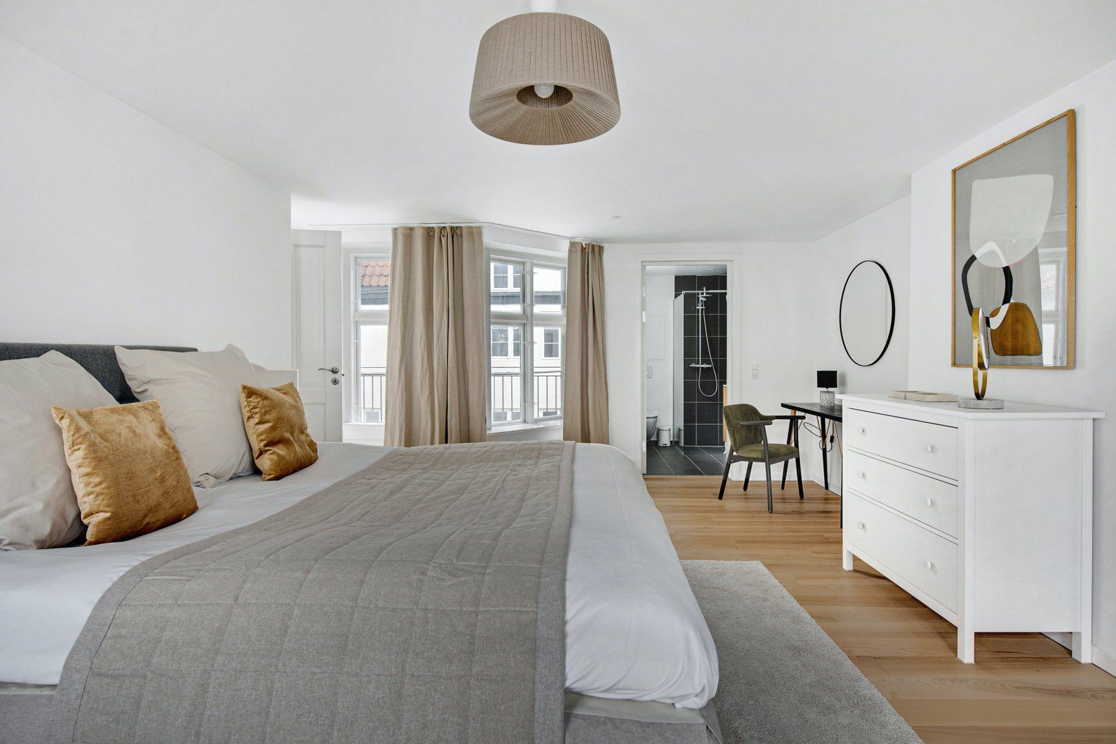 When it comes to location, it doesn't get better than this apartment. Push open your front door and find yourself right in the city centre, with shops, restaurants and bars in every direction. Strøget, an expansive pedestrian street lined with trendy boutiques, is just a five-minute walk away. From here, saunter across the canal and over to the Christiansborg Palace. This historic landmark houses the current Danish government – as well as a stellar collection of paintings and sculptures.