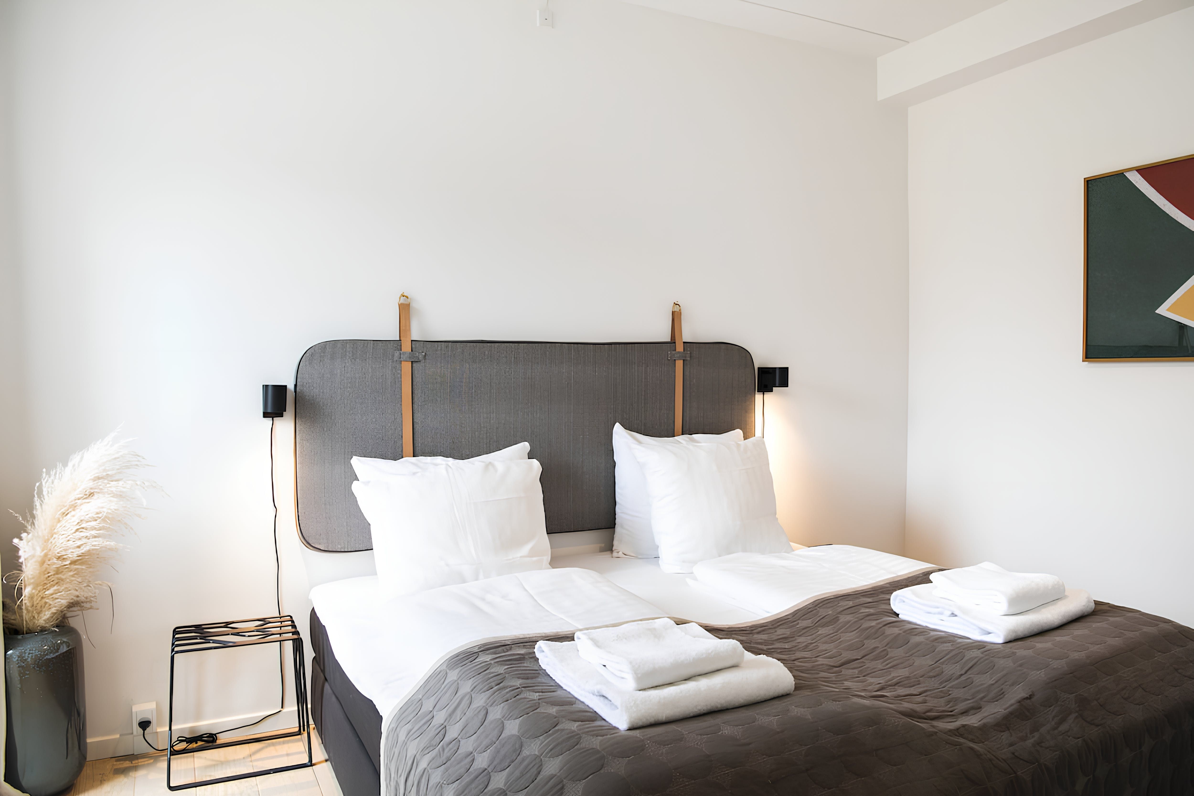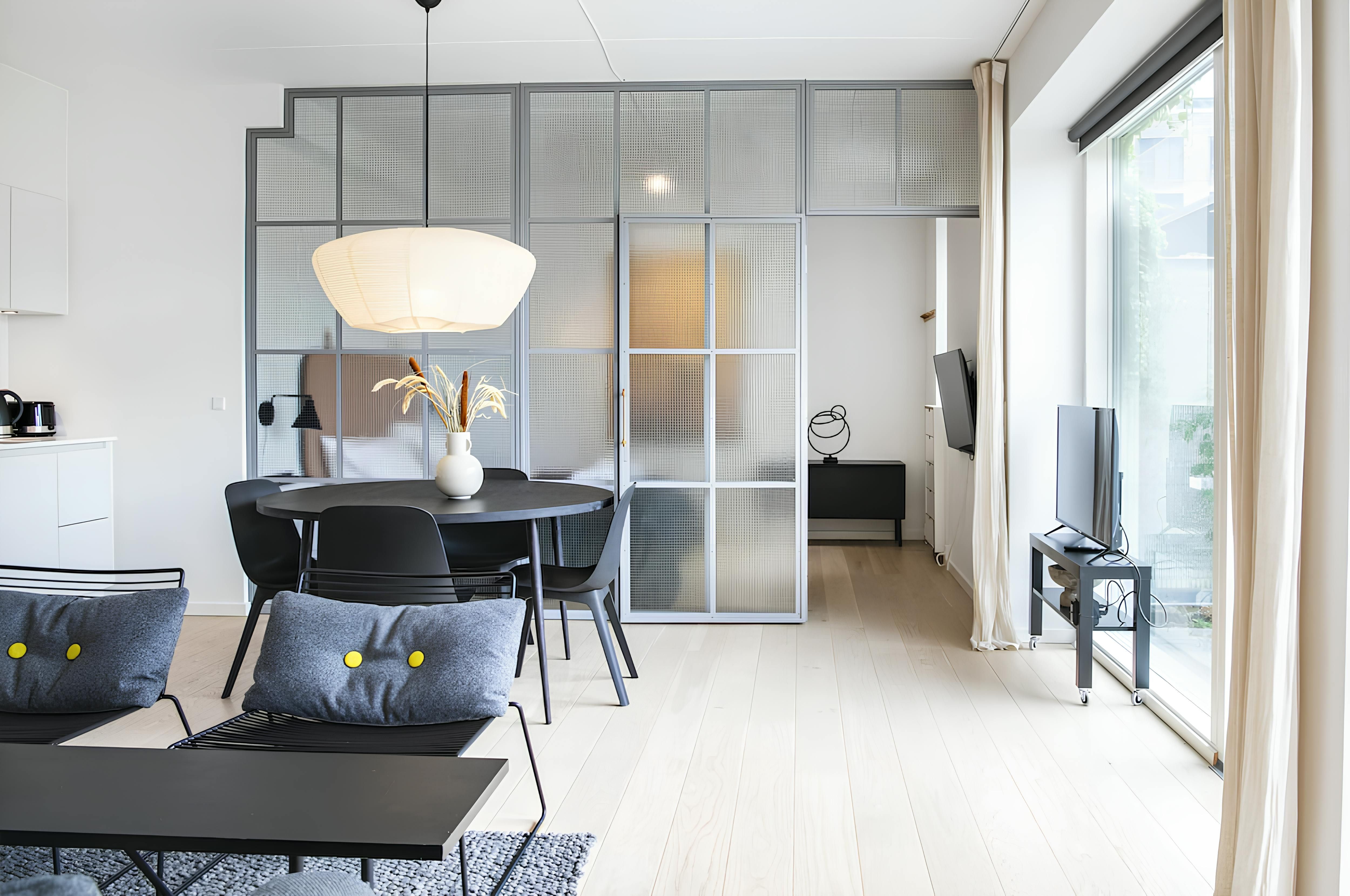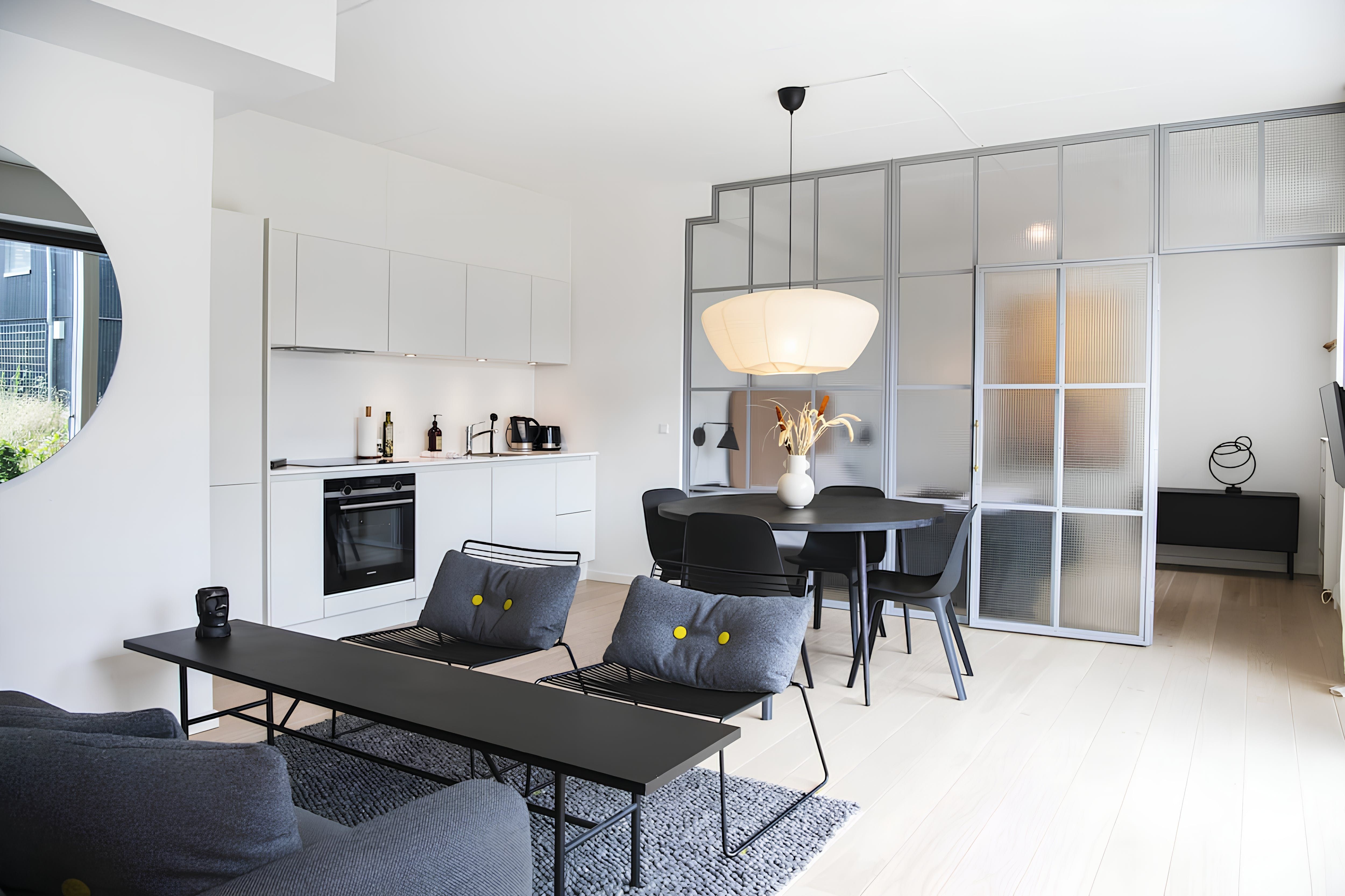 Nature and beach lovers will no doubt adore this home's location. The beachfront Amager Strand is nearby, yet Copenhagen's city centre is just three stops on the Metro to Kongens Nytorv. The airport is a ten-minute drive, too, so this place is ideal for a weekend break or business trip. Back at this apartment, enjoy the panoramic views of the azure waters from the private terrace or unwind in the living space. At full capacity, two people will be on a sofa bed in the living area adjacent to one of the bedrooms, which, although it has a frosted glass partition, is not very private.