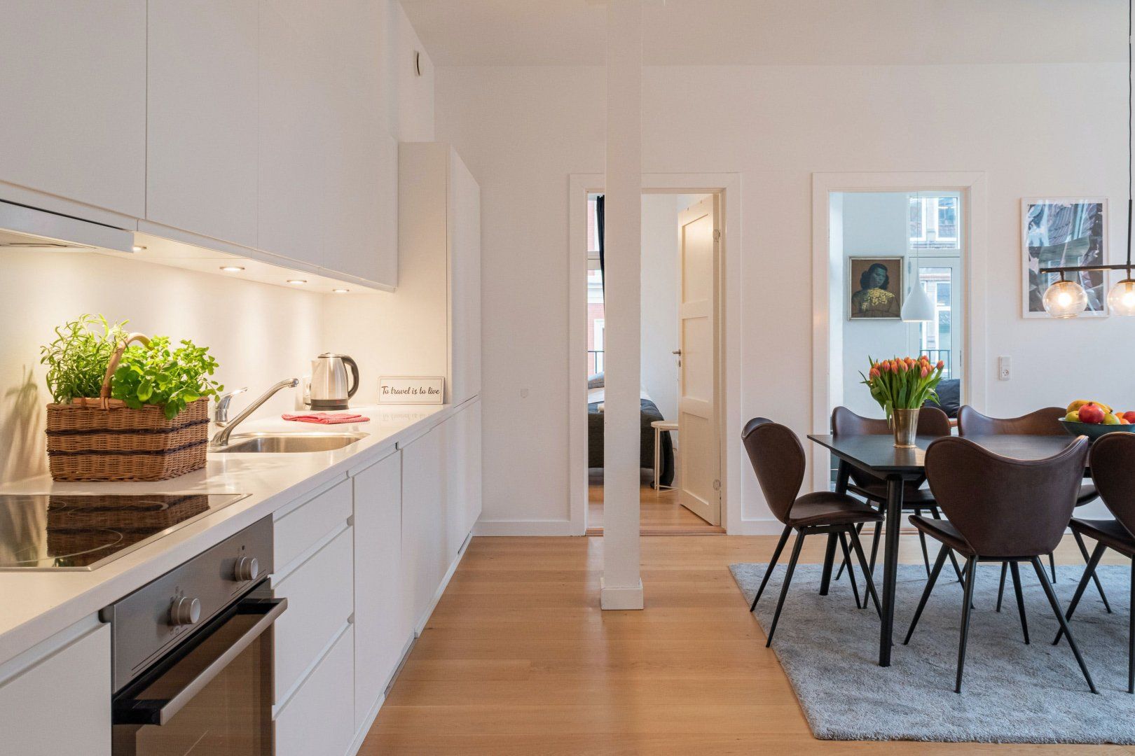 Just a short walk away from many of the city's big attractions, here you'll be in a vibrant neighbourhood, buzzing with bars, restaurants and shops. And after a busy day of sightseeing, you'll be coming home to a practical and well-equipped apartment. All-white walls and wood floors provide a traditionally Scandi feel, and we love the eat-in kitchen, with its big table and statement light fittings.