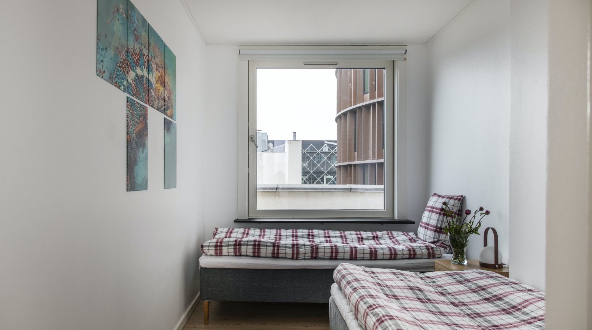 What The Comet lacks in personality, it makes up for with its gorgeous views of Axel Towers’ copper-plated architecture. We love how central this home is, and we also love how you can take advantage of its amazing location from the terrace. The Comet’s designed with a monochrome colour palette, touches of sandy tones, and artsy posters that liven up the home in a cool way.
