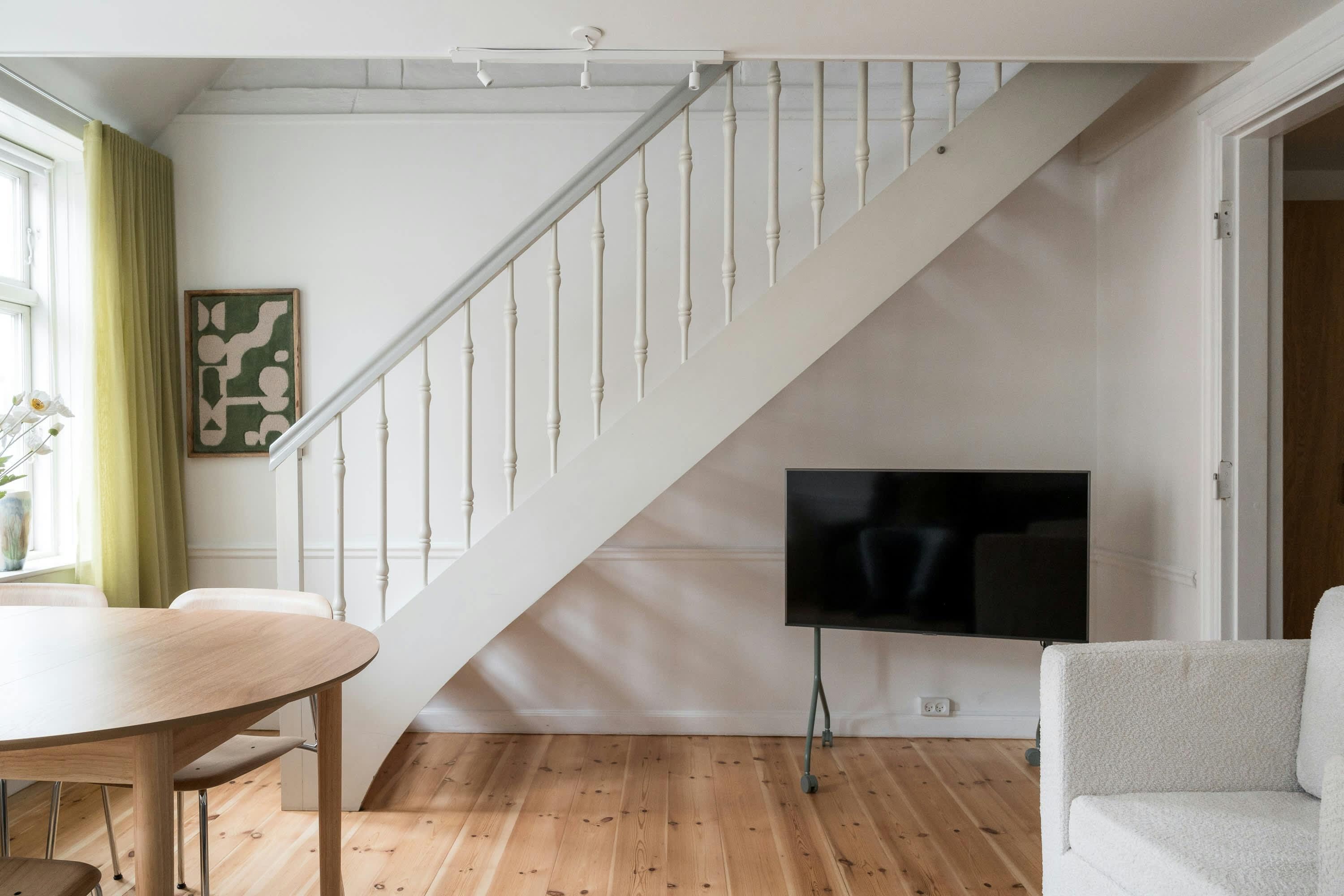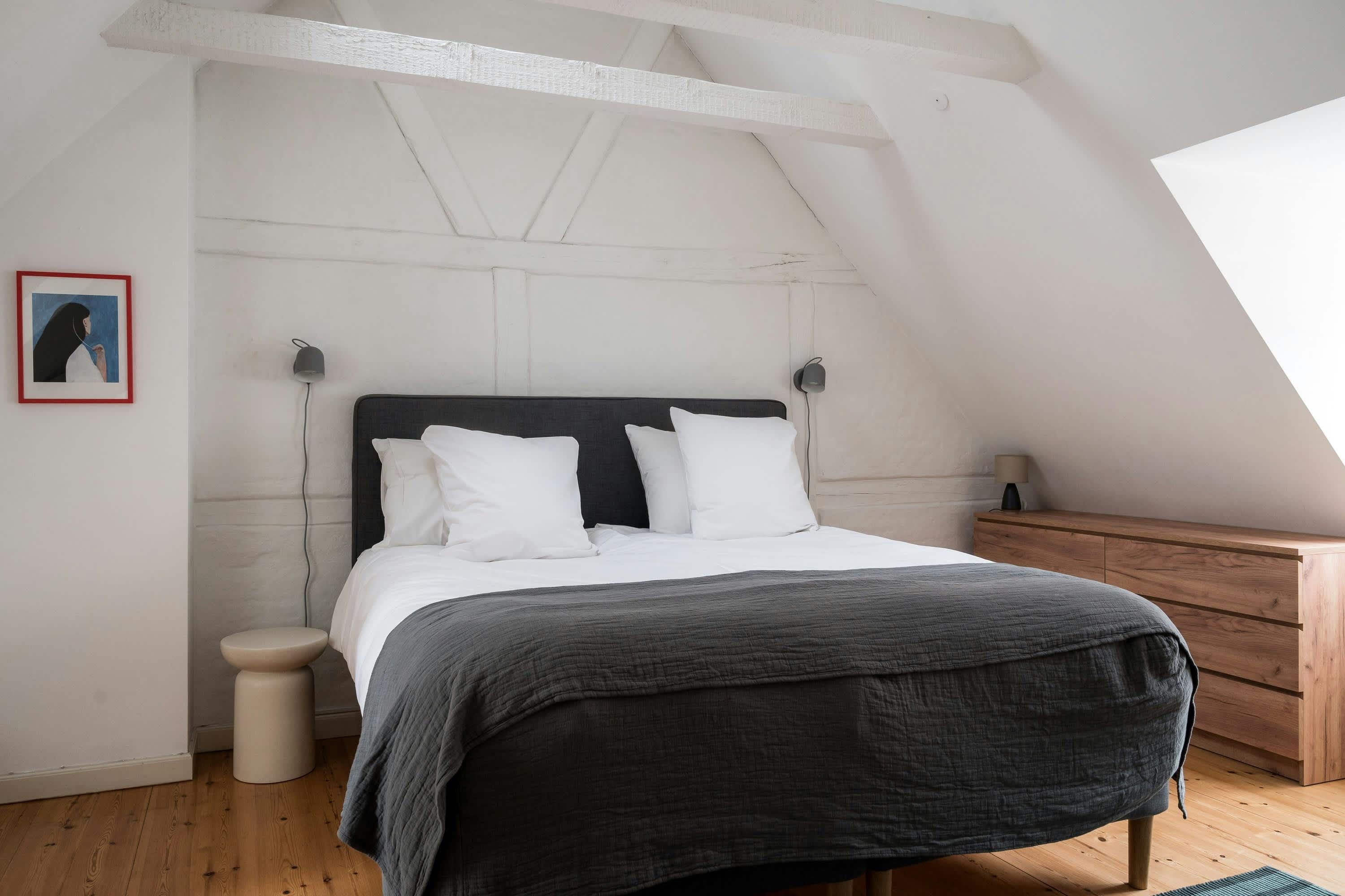 Combining smart design and contemporary comfort, this apartment provides the perfect city sanctuary. Set across two floors, the rooms are perfect for groups and families in search of simplicity and ease. The space might be compact, but it’s well equipped and there’s the handy addition of a sofa bed for two guests in the living room. You can also enjoy your morning coffee in the cafe located in the building. Plus, it’s just a short stroll along the charming cobblestone streets to Strøget and the iconic City Hall Square.