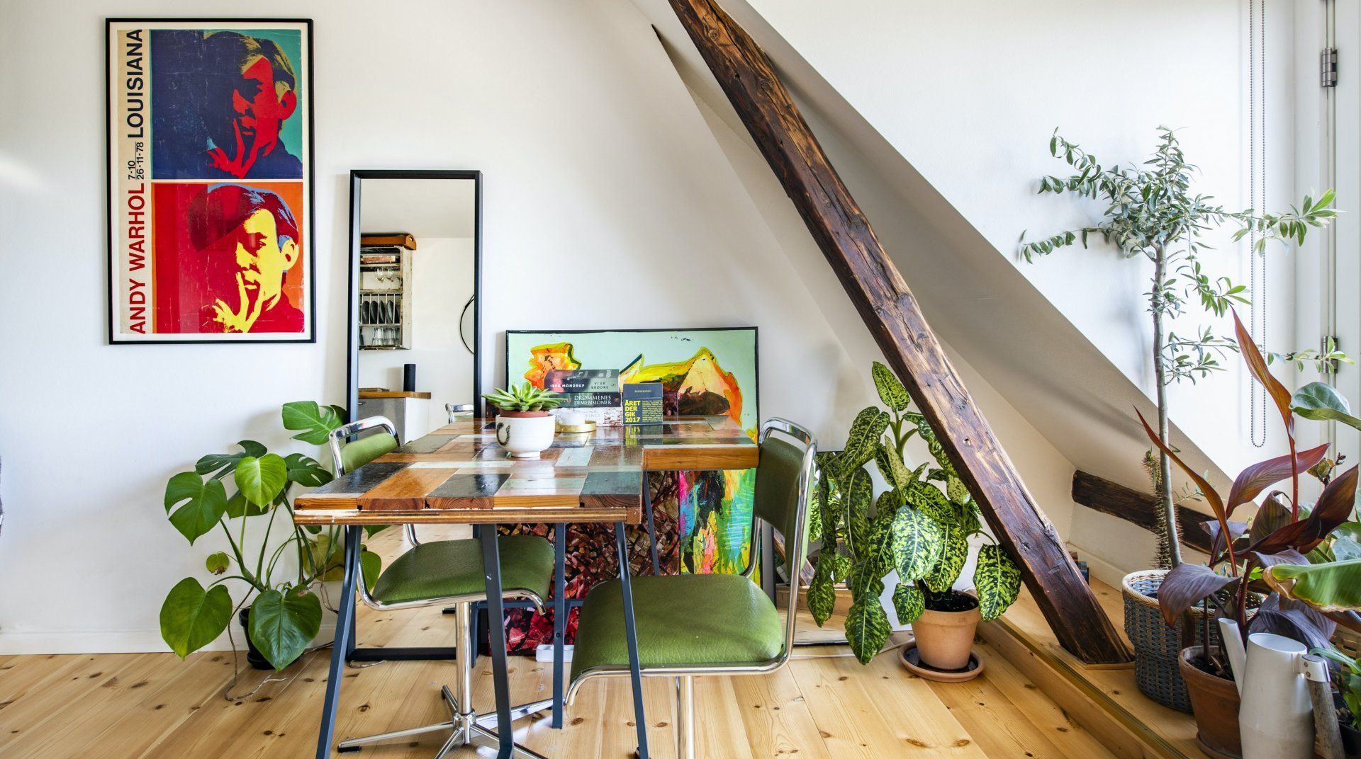 Don’t let the graffiti on the front door scare you off, The Green Market is a little haven in young and trendy Nørrebro. Located on the fifth floor, it’s got a loft-like atmosphere with plenty of green plants, vintage furniture and fun artworks. We also love the exposed wooden beams that add a charming touch to this little home. Since it is a studio apartment, it’s especially great for young couples or travellers looking to be in the epicentre of all things cool. It could feel a little cramped – but for what it lacks in size, it makes up for with its charismatic atmosphere.