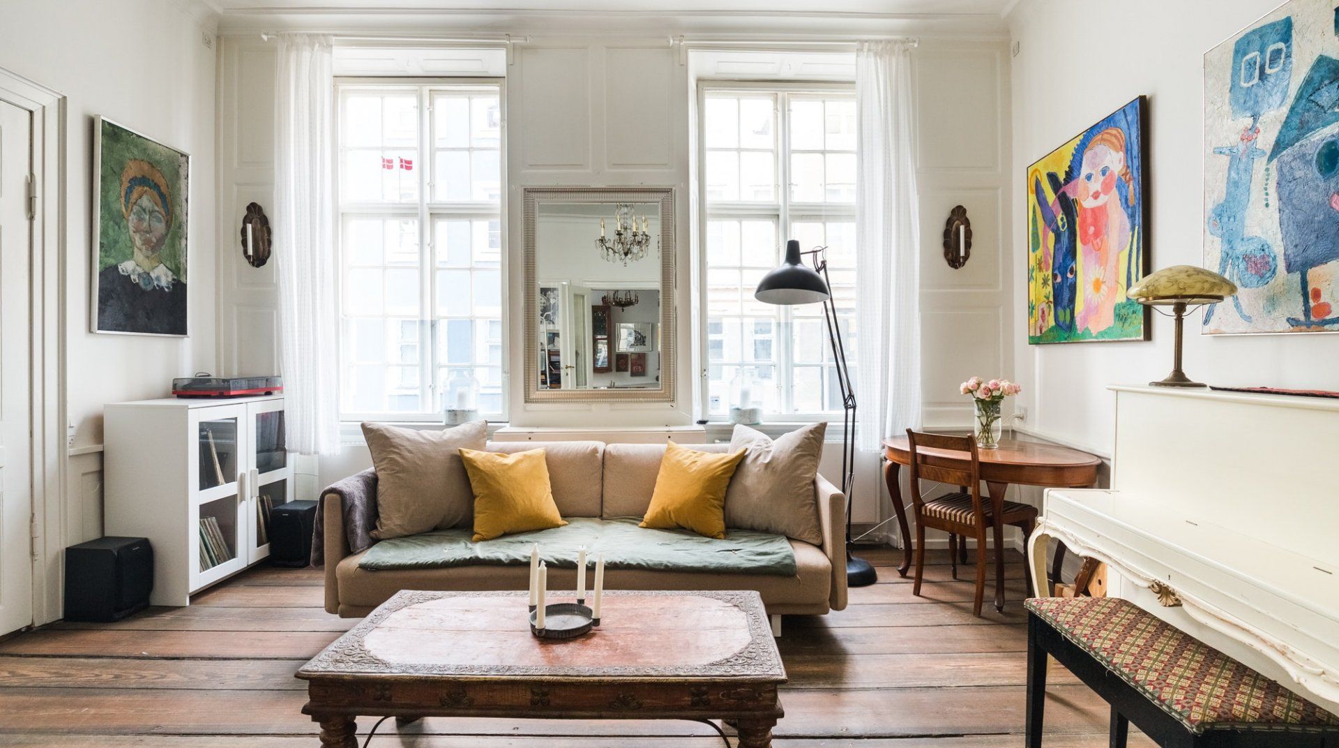 The Magic Flute is rich in history. Located just off lively Nyhavn, the building dates all the way back to 1658 (there’s a plaque at the entrance detailing all the owners throughout the years). With crooked, creaky floors, it’s oozing old charm – and paired with Matilde’s artwork, instruments, and personality, it becomes one of a kind. She’s an opera singer and works just down the road in the Royal Opera House, which only makes this home even more special.