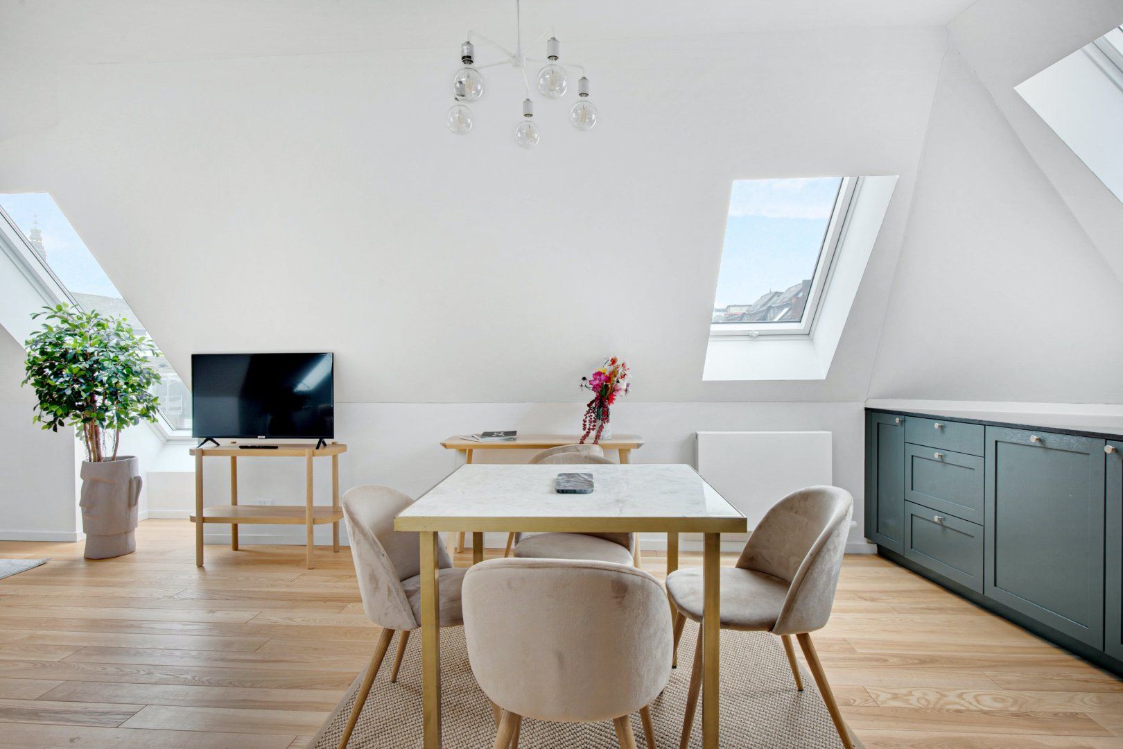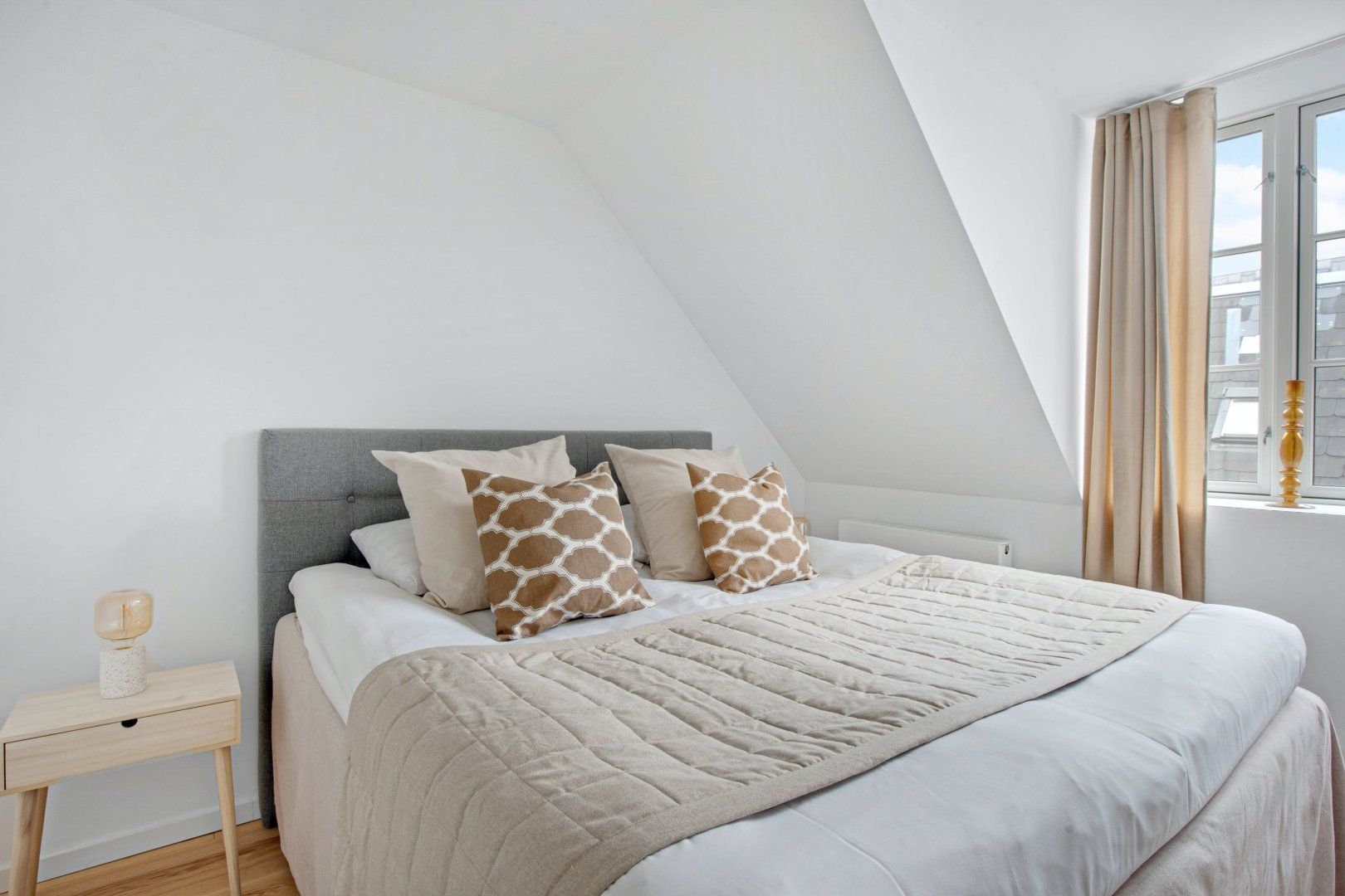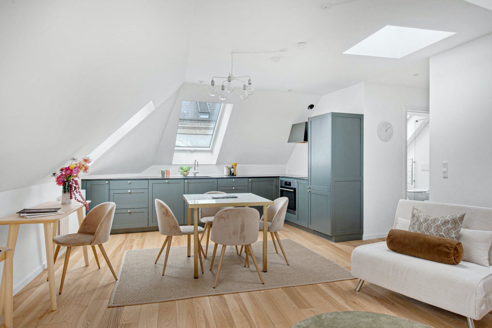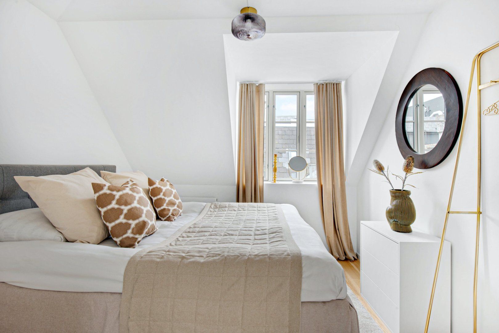 Brimming with Scandi charm, this top-floor apartment offers a stylish base in the centre of Copenhagen. Not only are the interiors comfortable and bright, but you also have the luxury of a private balcony with views of neighbouring red rooftops.