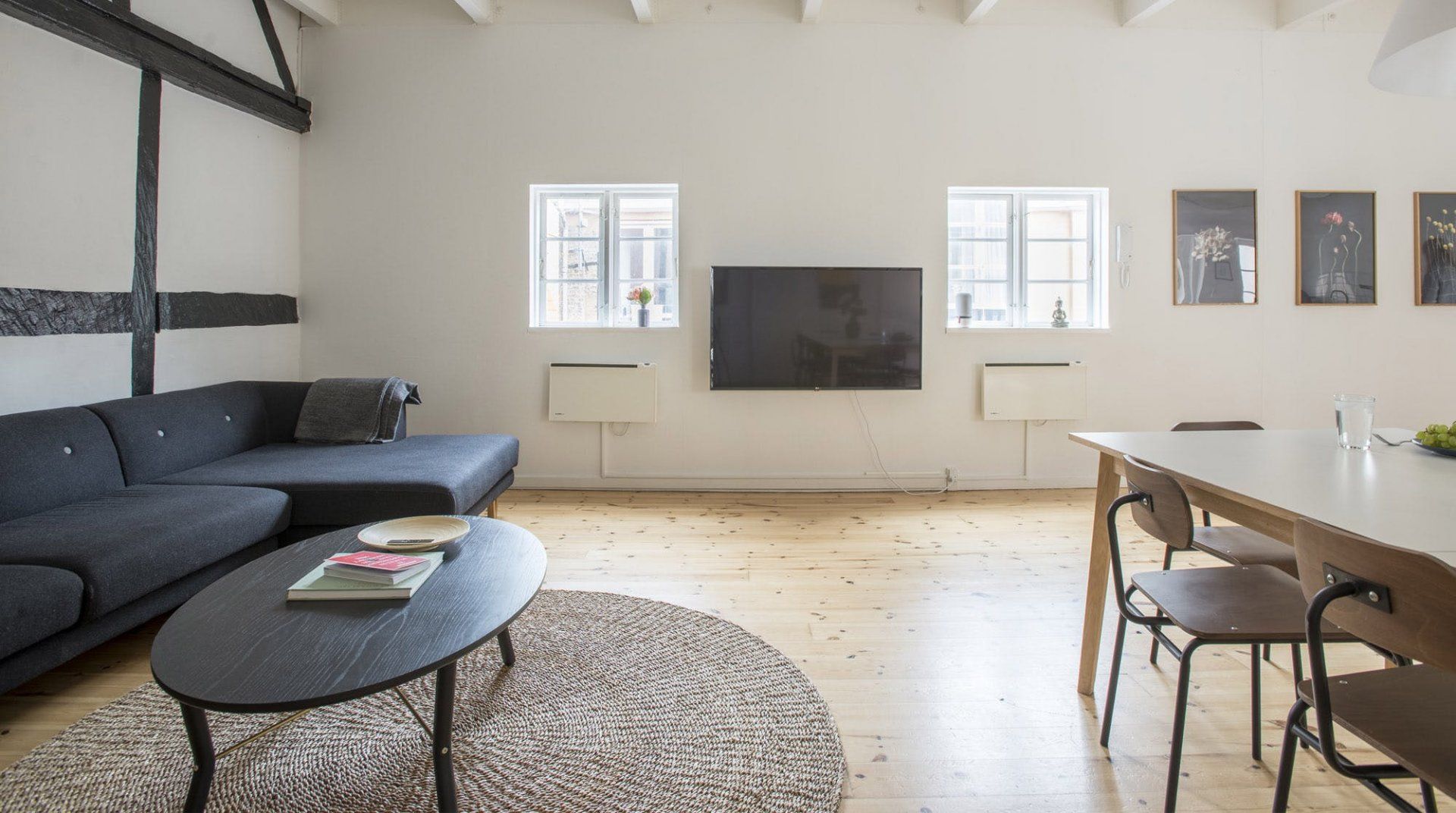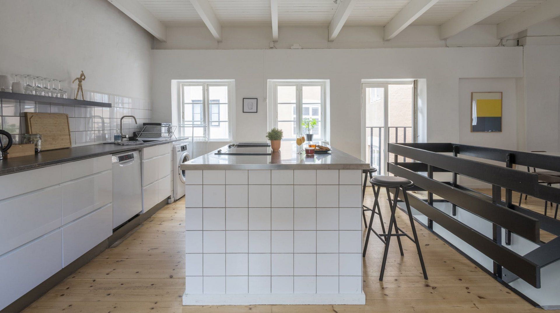 This truly unique home is set over three floors with high ceilings, exposed beams and classically Danish design elements throughout. First built in 1755, it's been transformed into an incredible space that perfectly suits modern living. Brilliantly located in an area buzzing with activity, the building helps to block any noise from the outside world – providing you with the best of both worlds. You enter the home through a little courtyard to find the first couple of floors taken up by well-appointed bedrooms with soothing neutral colour palettes that help you drift off at the end of the day. However, it's the open-plan top floor that is the undoubted star of the show. It's an ideal space for socialising as you hang out by the kitchen counter and relax in the chillout area before sitting down for dinner at the large, ten-seater dining table. And if you'd like to treat yourself to a meal out, you've got too many options to mention within a short walk. Plus, with Amalienborg Palace and Nyhavn just around the corner, you won't have to go far to experience the best of Copenhagen.