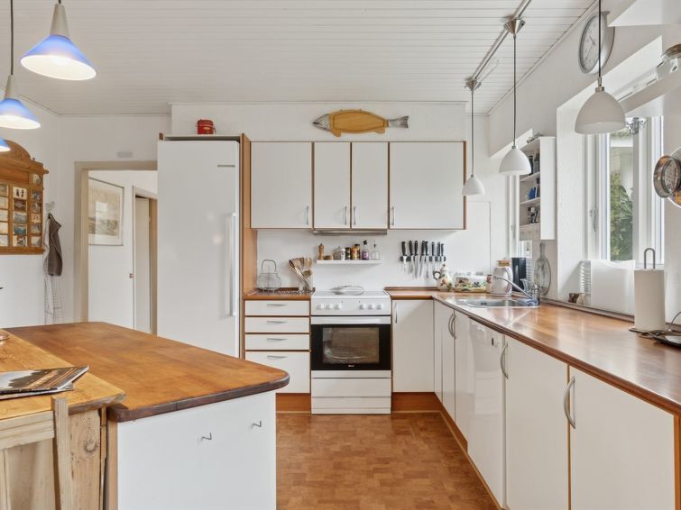 "Jenvold" - 950m from the sea", 3-room house 123 m2. Object suitable for 6 adults. Living room with TV. 1 room with 1 double bed. 1 room with 1 double sofabed. 1 room with 1 double sofabed. Kitchen (oven, dishwasher, 4 ceramic glass hob hotplates, freezer). Shower/WC. Conservatory.