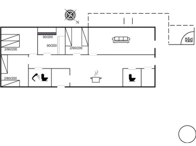 "Simon" - 1km from the sea", 4-room house 118 m2. Object suitable for 10 adults. Living room with TV and radio. 1 room with 1 double bed. 1 room with 2 beds. 1 room with 2 beds. 1 room with 2 x 2 bunk beds. Kitchen (oven, dishwasher, 4 ceramic glass hob hotplates, microwave, freezer).