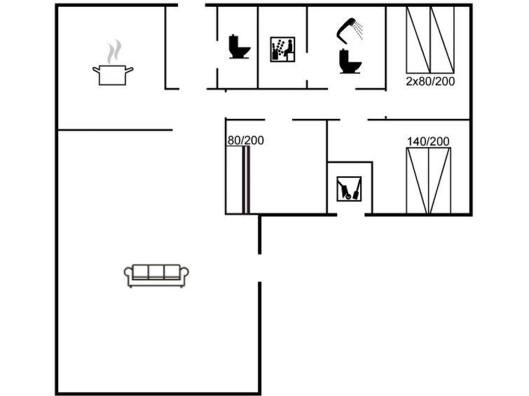 "Annielle" - from the sea", 3-room house 107 m2. Object suitable for 6 adults. Living room with TV, CD-player, hi-fi system and DVD. 1 room with 1 double bed. 1 room with 1 double bed. 1 room with 1 x 2 bunk beds. Kitchen (oven, dishwasher, 4 ceramic glass hob hotplates, microwave, freezer).