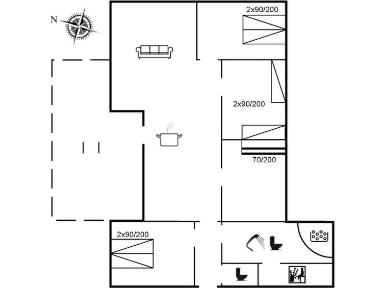"Hjalma" - from the sea", 4-room house 110 m2. Object suitable for 8 adults + 1 child. Living room with TV, CD-player, hi-fi system and DVD. 1 room with 1 double bed. 1 room with 2 beds. 1 room with 1 x 2 bunk beds. 1 room with 1 double bed. Kitchen (oven, dishwasher, 4 ceramic glass hob hotplates, microwave, freezer).