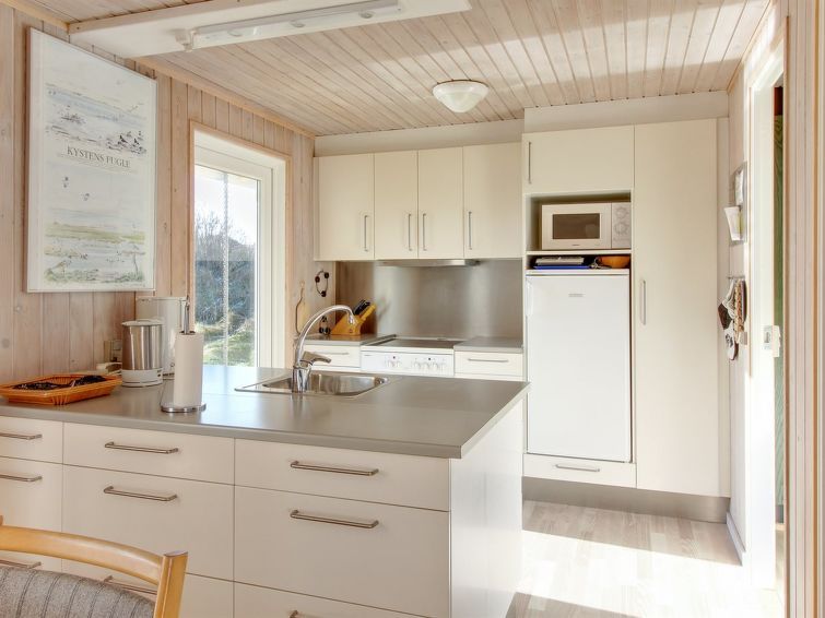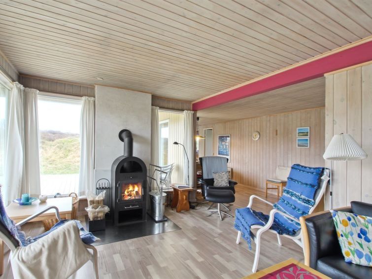 "Steffen" - 450m to the fjord", 3-room house 81 m2. Object suitable for 6 adults. Living room with TV, CD-player, hi-fi system and DVD. 1 room with 1 double bed. 1 room with 2 beds. 1 room with 1 double bed. Kitchen (oven, dishwasher, 4 ceramic glass hob hotplates, microwave, freezer).