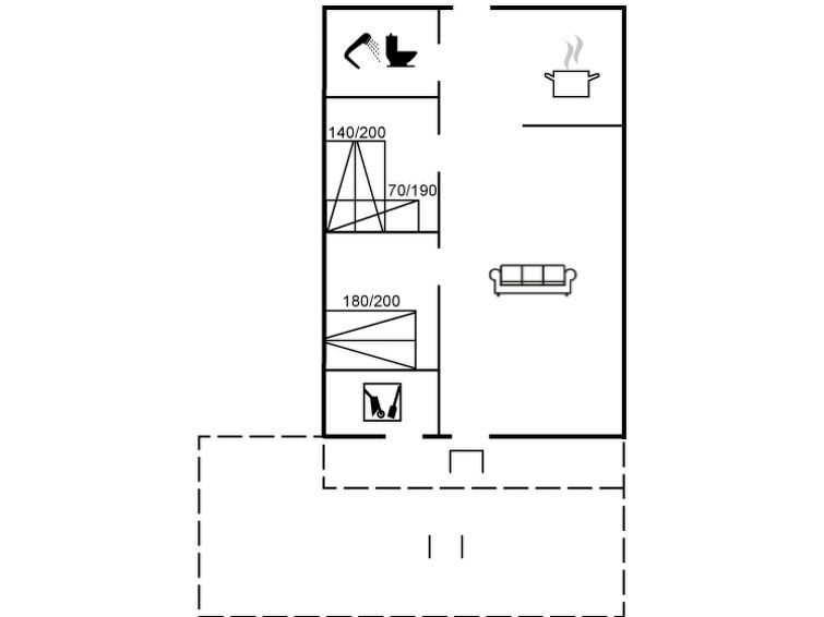 "Frender" - 800m to the fjord", 2-room house 50 m2. Object suitable for 5 adults. Living room with TV. 1 room with 1 double bed and 1 sleeping facility. 1 room with 1 double bed. Kitchen (4 hot plates, oven, microwave, freezer). Shower/WC. Terrace 12 m2, roofed. Facilities: Internet (WiFi).
