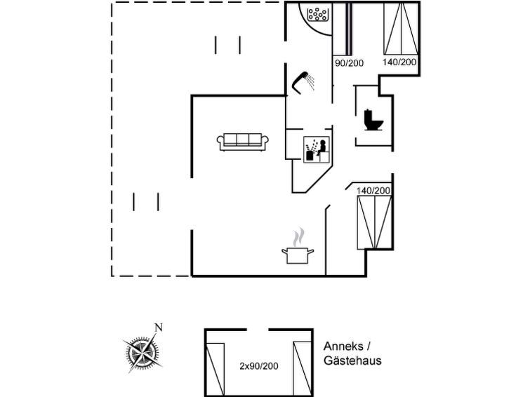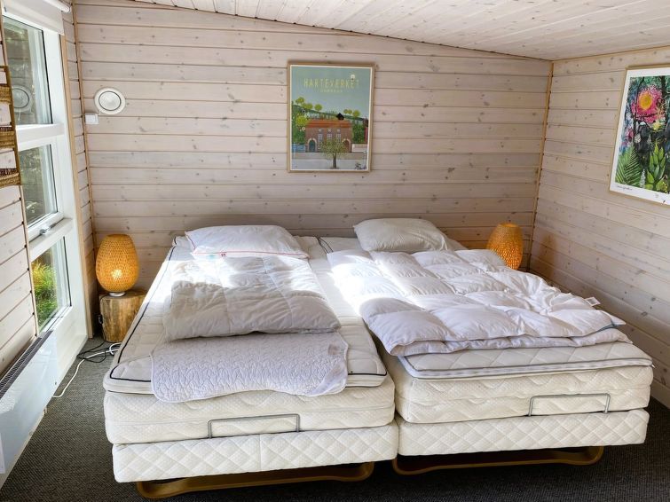 "Hilde" - 350m to the fjord", 3-room house 75 m2. Object suitable for 7 adults. Living room with TV. 1 room with 1 double bed. Studio 1 room with with 2 beds and 1 x 2 bunk beds, 1 double bed. Kitchen (oven, dishwasher, 4 ceramic glass hob hotplates, microwave, freezer). Shower/WC, hydro massage bath.