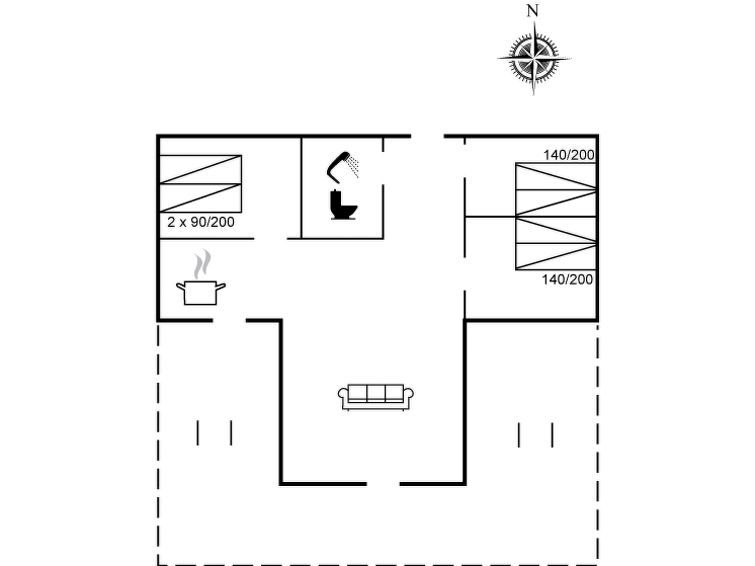 "Holm" - 700m to the fjord", 3-room house 64 m2. Object suitable for 6 adults. Living room with TV, radio and DVD. 1 room with 2 sofabeds. 1 room with 1 double bed. 1 room with 1 double bed. Kitchen (oven, dishwasher, 4 ceramic glass hob hotplates, microwave, freezer). Shower/WC. Terrace 18 m2, roofed.