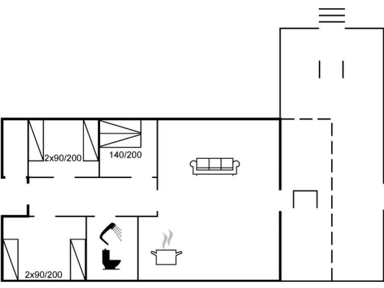 "Ofrath" - 350m to the fjord", 3-room house 65 m2. Object suitable for 6 adults. Living room with TV and radio. 1 room with 1 double bed. 1 room with 2 beds. 1 room with 2 beds. Kitchen (oven, dishwasher, 4 induction hot plates, microwave, freezer). Shower/WC. Terrace 15 m2, roofed.