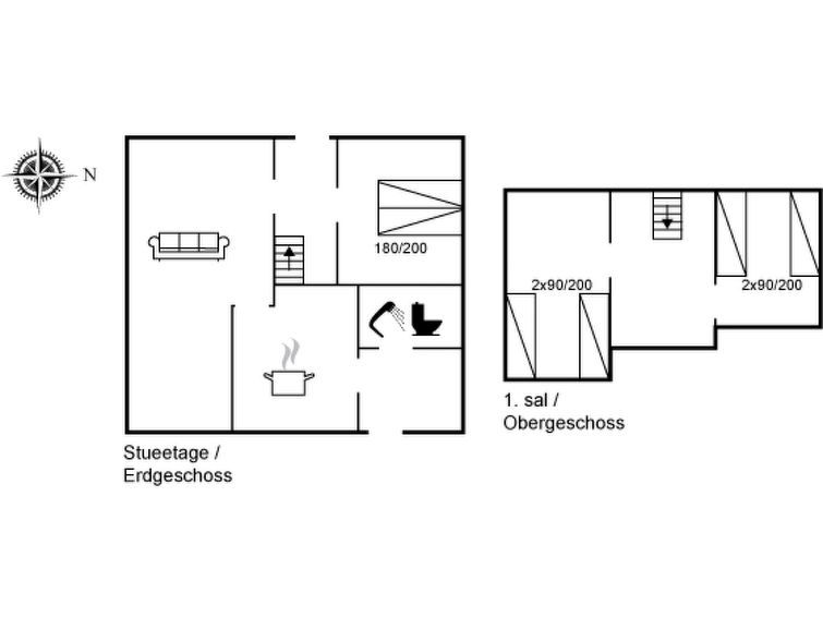 "Swaantje" - 150m to the fjord", 3-room house 84 m2. Object suitable for 6 adults. Living room with TV. 1 room with 1 double bed. 1 room with 2 beds. 1 room with 2 beds. Kitchen (oven, dishwasher, 4 induction hot plates, freezer). Shower/WC. Of the bay. Facilities: children's high chair.