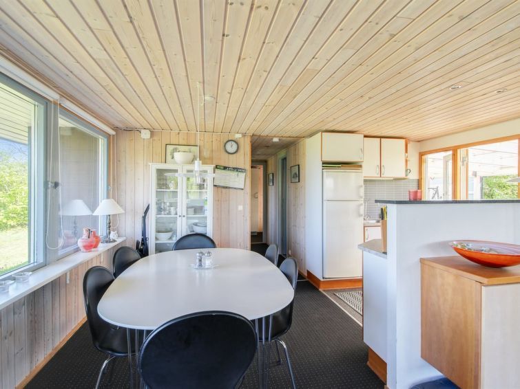 "Jukka" - 700m from the sea", 3-room house 70 m2. Object suitable for 6 adults. Living room with TV, radio, CD-player, hi-fi system and DVD. 1 room with 1 double bed. 1 room with 1 x 2 bunk beds. 1 room with 1 double sofabed. Kitchen (oven, dishwasher, 4 ceramic glass hob hotplates, microwave, freezer).