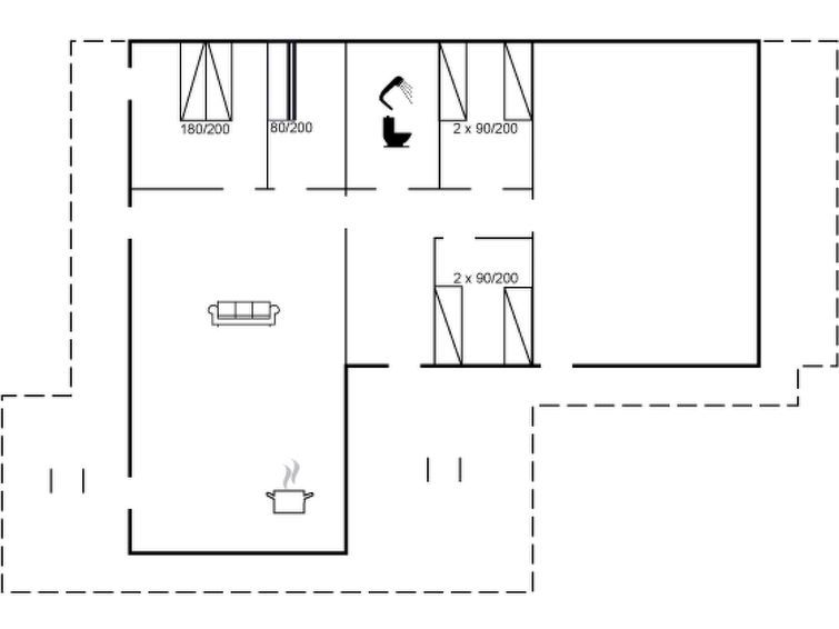 "Berta" - 70m to the fjord", 4-room house 127 m2. Object suitable for 8 adults + 1 child. Living room with TV and DVD. 1 room with 1 double bed. 1 room with 2 beds. 1 room with 2 beds. 1 room with 1 x 2 bunk beds. Kitchen (oven, dishwasher, 4 induction hot plates, microwave, freezer).