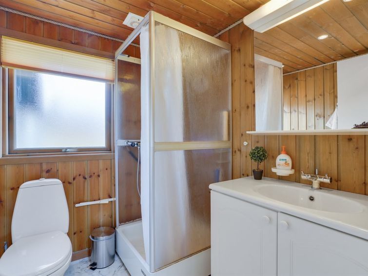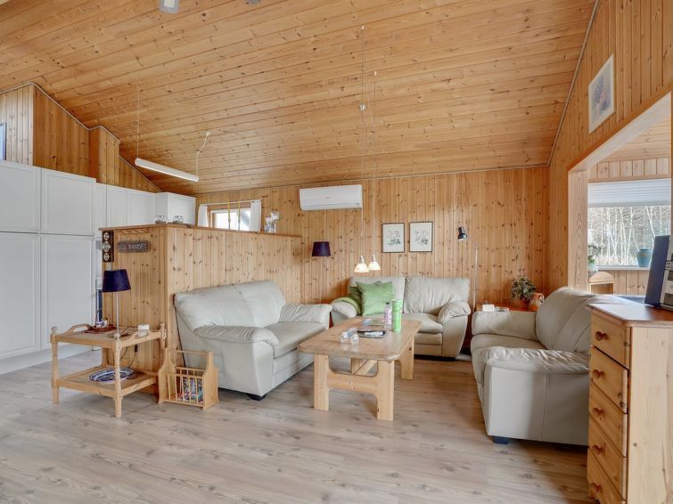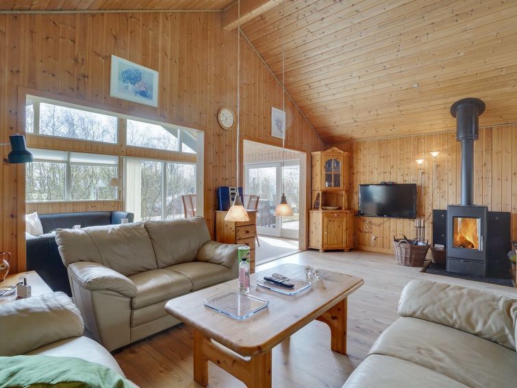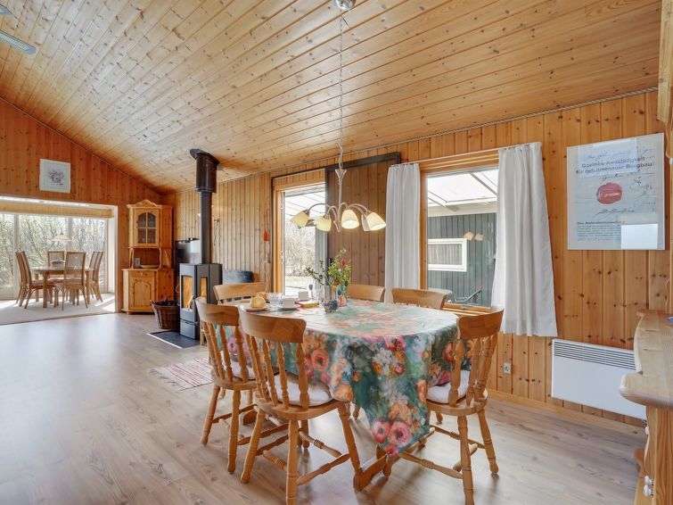 "Nikoline" - 150m to the fjord", 3-room house 89 m2. Object suitable for 6 adults. Living room with TV and radio. 1 room with 1 double bed. Open gallery, Studio 1 room with with 1 x 2 bunk beds, 1 double bed and 2 sleeping facilities. Kitchen (oven, dishwasher, 4 ceramic glass hob hotplates, microwave, freezer).