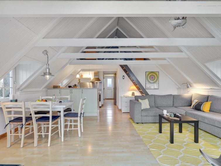 "Gunhwat" - 350m to the fjord", 2-room house 60 m2. Object suitable for 6 adults. Living room with TV. 1 room with 1 double bed. Open gallery, Studio 1 room with with 1 double bed and 2 sleeping facilities. Kitchen (oven, dishwasher, 4 ceramic glass hob hotplates, freezer). Shower/WC.