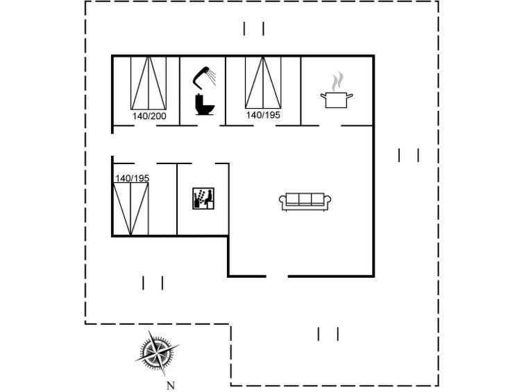 "Agga" - 200m from the sea", 3-room house 79 m2. Object suitable for 6 adults. Living room with TV, CD-player and hi-fi system. 1 room with 1 double bed. 1 room with 1 double bed. 1 room with 1 double bed. Kitchen (4 hot plates, oven, dishwasher, microwave, freezer). Shower/WC. Terrace 40 m2, roofed.