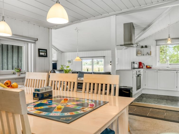 "Eske" - 200m to the fjord", 2-room house 75 m2. Object suitable for 4 adults + 3 children. Living room with TV, radio and DVD. 1 room with 1 double bed. 1 room with 2 double beds. Kitchen (oven, dishwasher, 4 ceramic glass hob hotplates, freezer). Shower/WC. Conservatory. Of the bay.