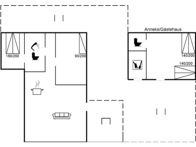 "Aneline" - 700m from the sea", 3-room house 104 m2. Object suitable for 6 adults. Living room with TV. 1 room with 1 double bed. Studio 1 room with with 1 bed and 2 double beds. Kitchen (oven, dishwasher, 4 ceramic glass hob hotplates, microwave, freezer). 2 showers/WC. Terrace 20 m2, roofed.