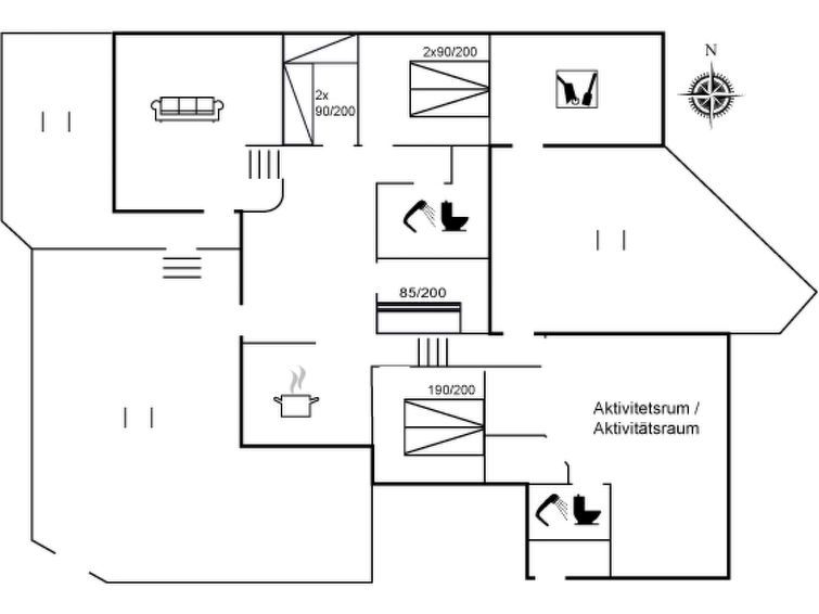 "Annaliese" - 175m from the sea", 5-room house 133 m2. Object suitable for 8 adults. Living room with TV and DVD. 1 room with 1 double bed. 1 room with 1 x 2 bunk beds. 1 room with 2 beds. 1 room with 1 double bed. Kitchen (oven, dishwasher, 4 ceramic glass hob hotplates, microwave, freezer).