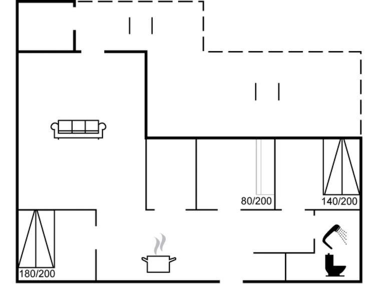 "Gundborg" - 200m from the sea", 3-room house 65 m2. Object suitable for 6 adults + 1 child. Living room with TV. 1 room with 1 double bed. 1 room with 1 x 2 bunk beds. 1 room with 1 double bed. Kitchen (oven, dishwasher, 4 ceramic glass hob hotplates, microwave, freezer). Shower/WC.